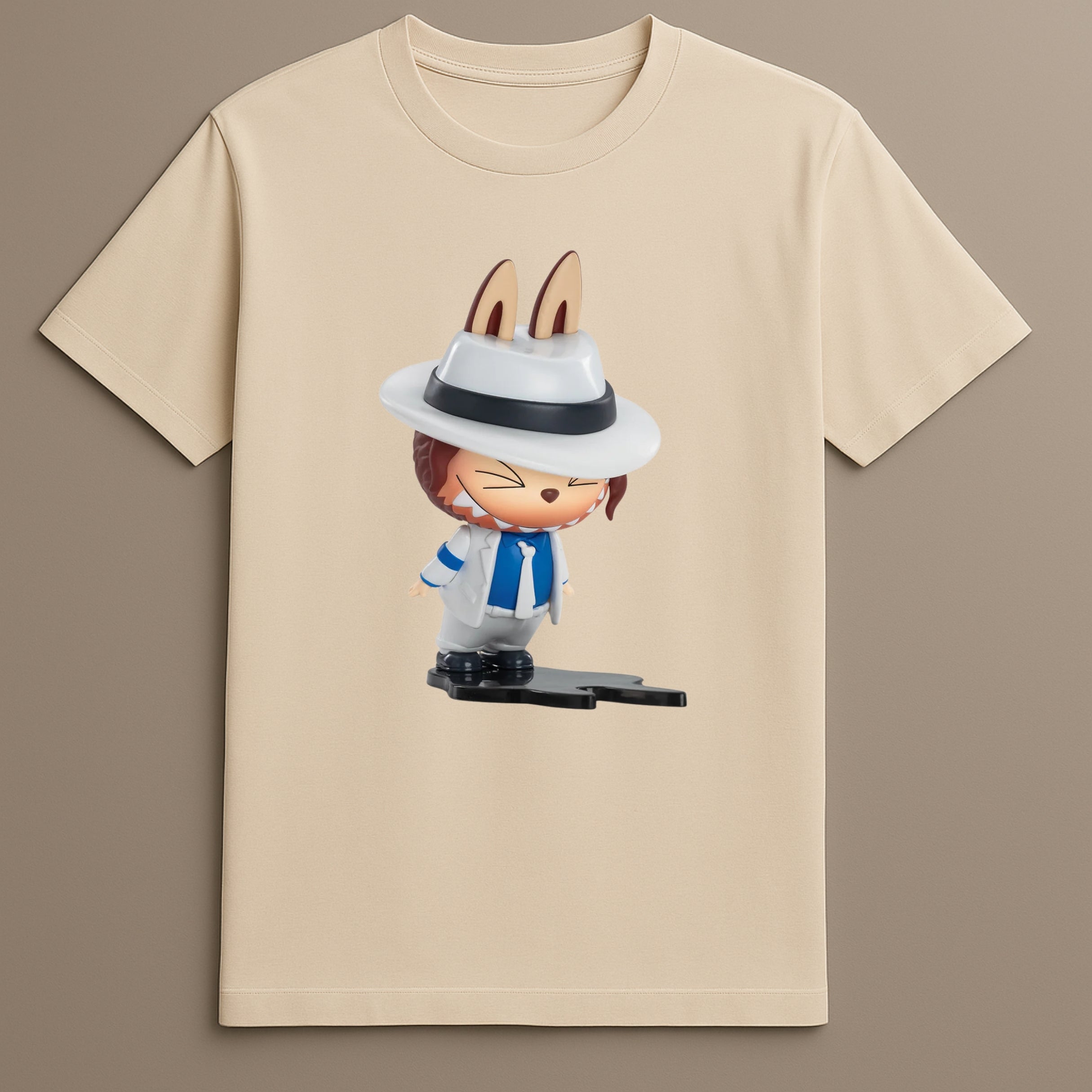 Designed with simplicity in mind, the tee keeps the background clear, letting the Labubu graphic take center stage. The pose itself communicates rhythm, confidence, and individuality—perfect for anyone who likes their fashion to reflect more than just fabric.