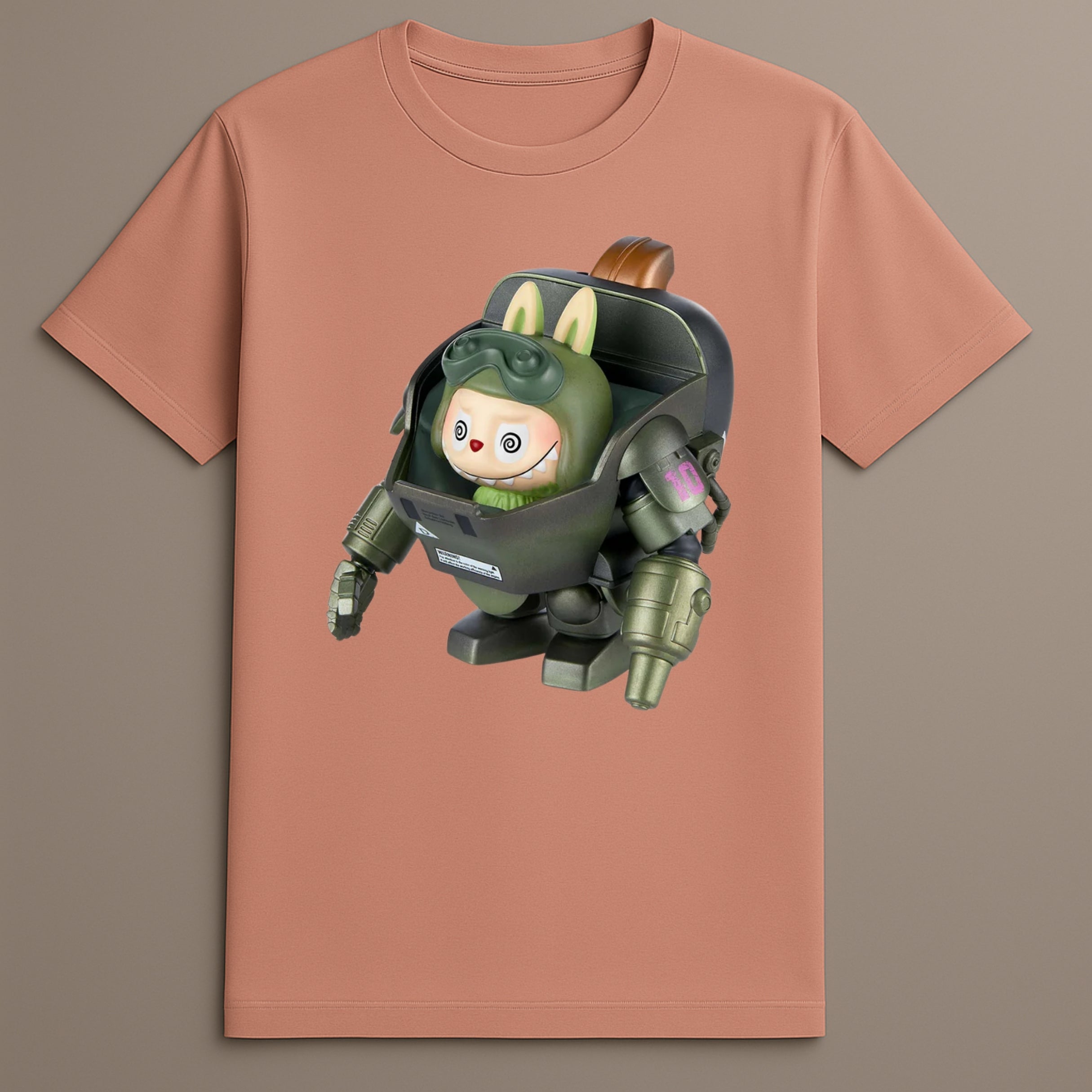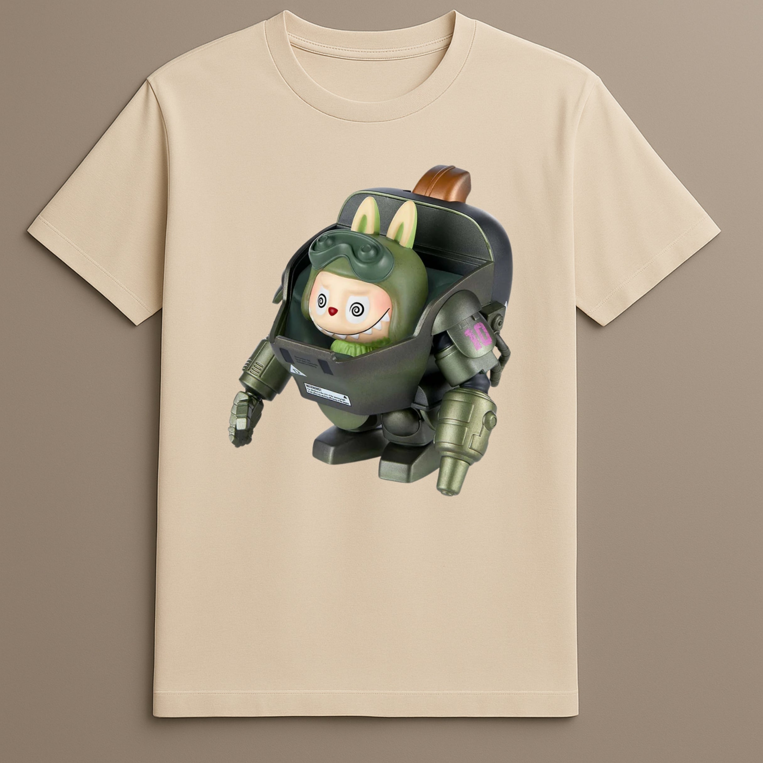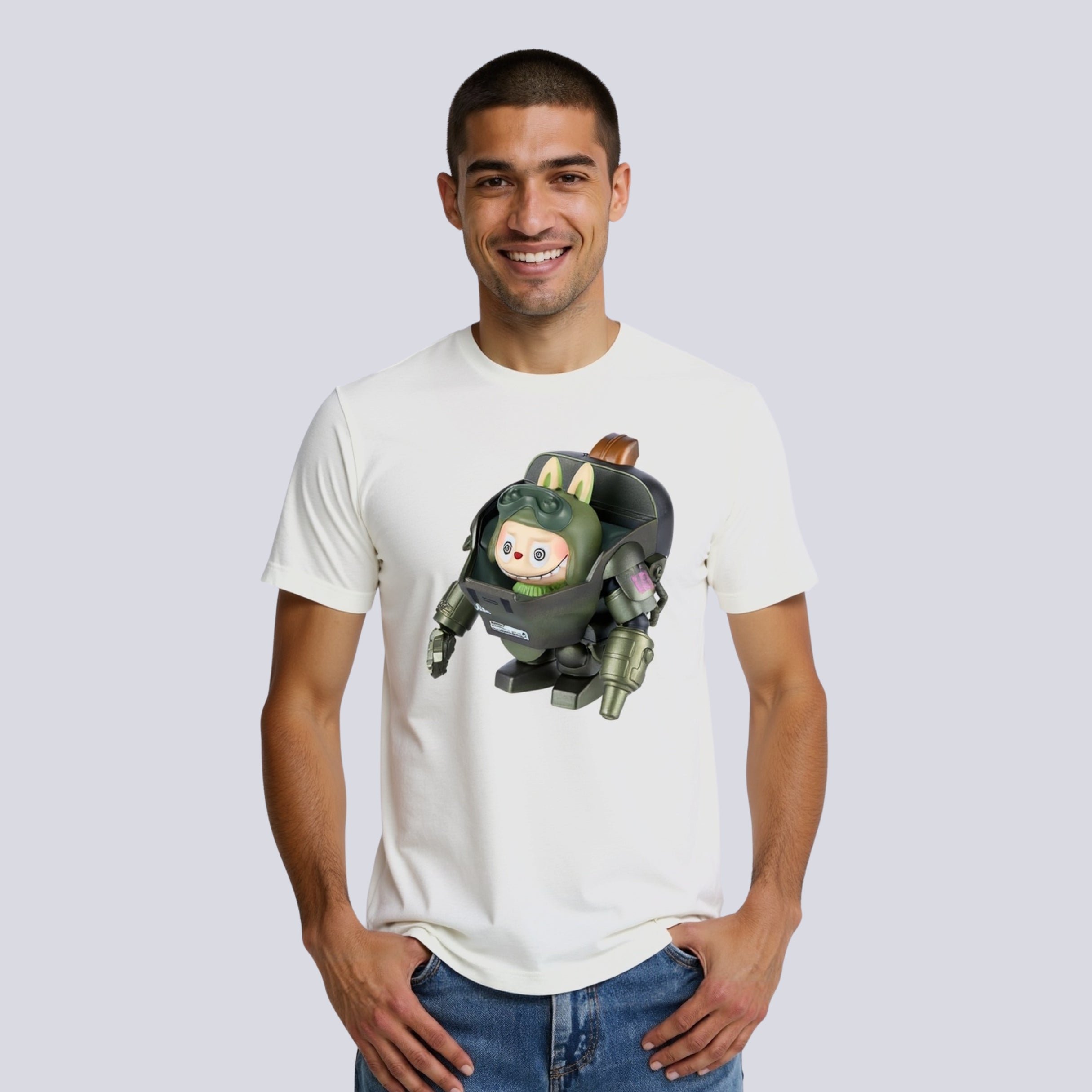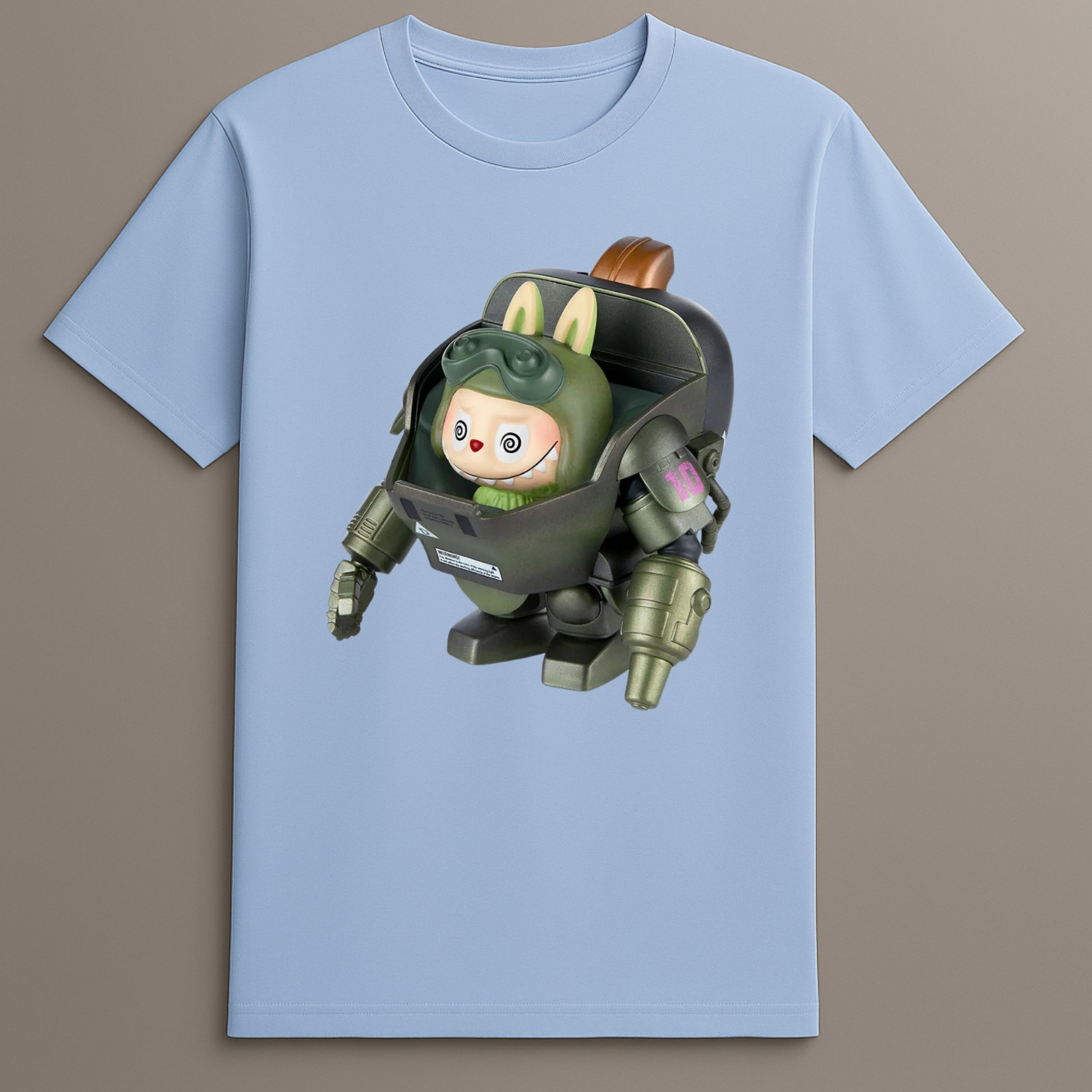 The Labubu Maschinen Krieger Inspired Whimsical Print T Shirt merges character-focused design with stylized robotic art, offering an illustrated centerpiece set within a wearable layout. This graphic tee brings together a mechanical concept and light creative cues through a playful illustration anchored on symmetry and structure.