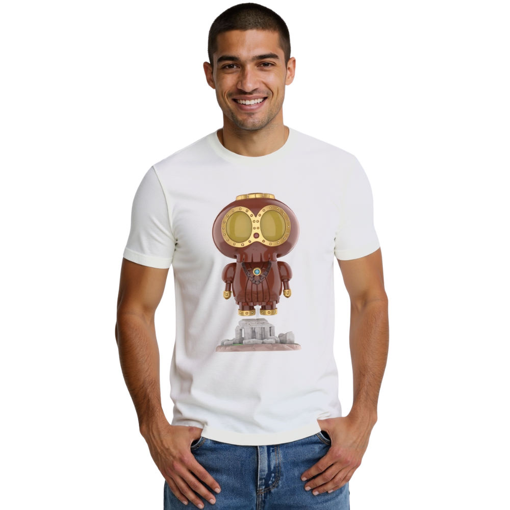 Labubu Battle Figure T-Shirt Concept: Ideal for those who appreciate combat-ready stances and sci-fi figure design elements.