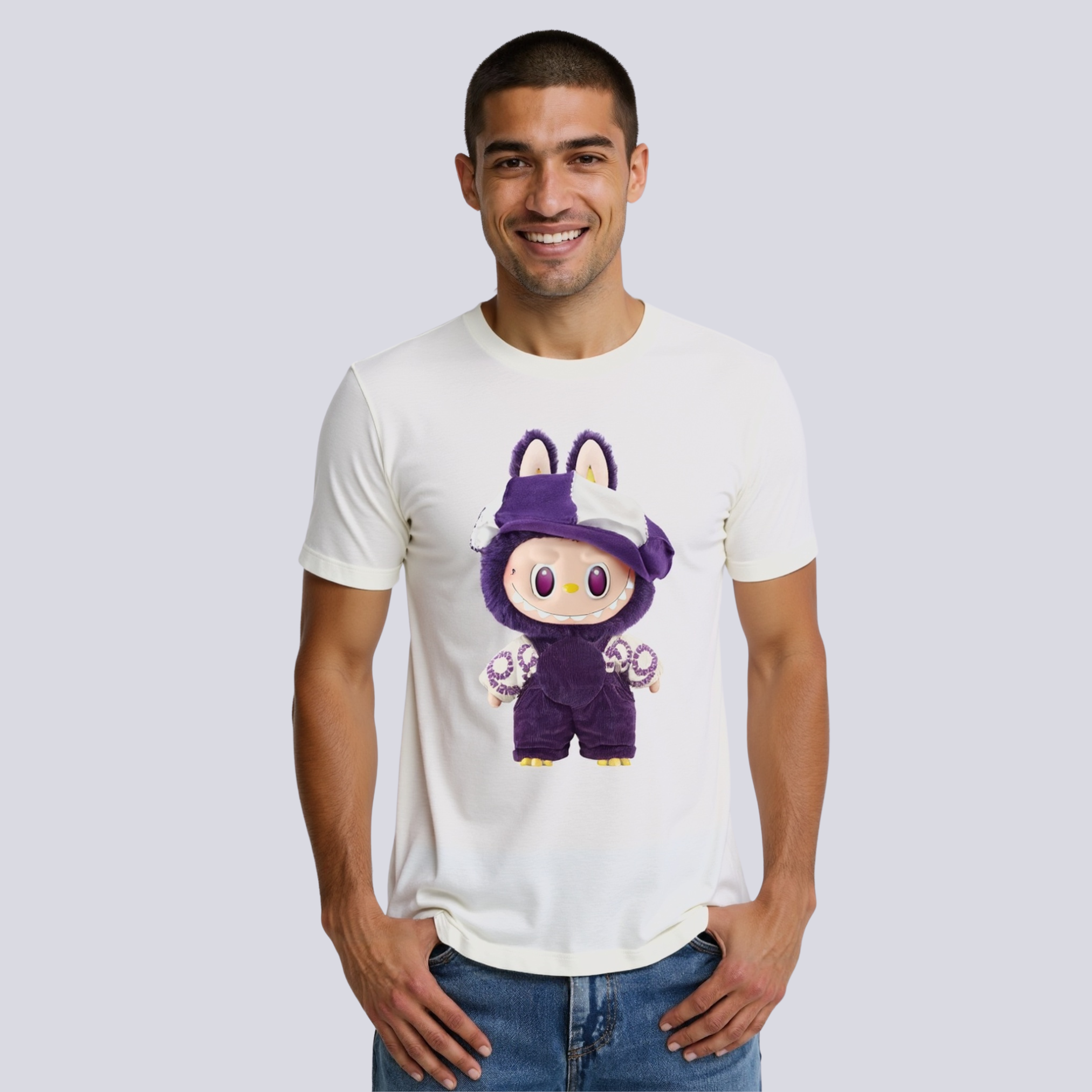 Cartoon Style Apparel: The design focuses on illustration and figure-based art. The Labubu character appears with clean color contrast and recognizable features.