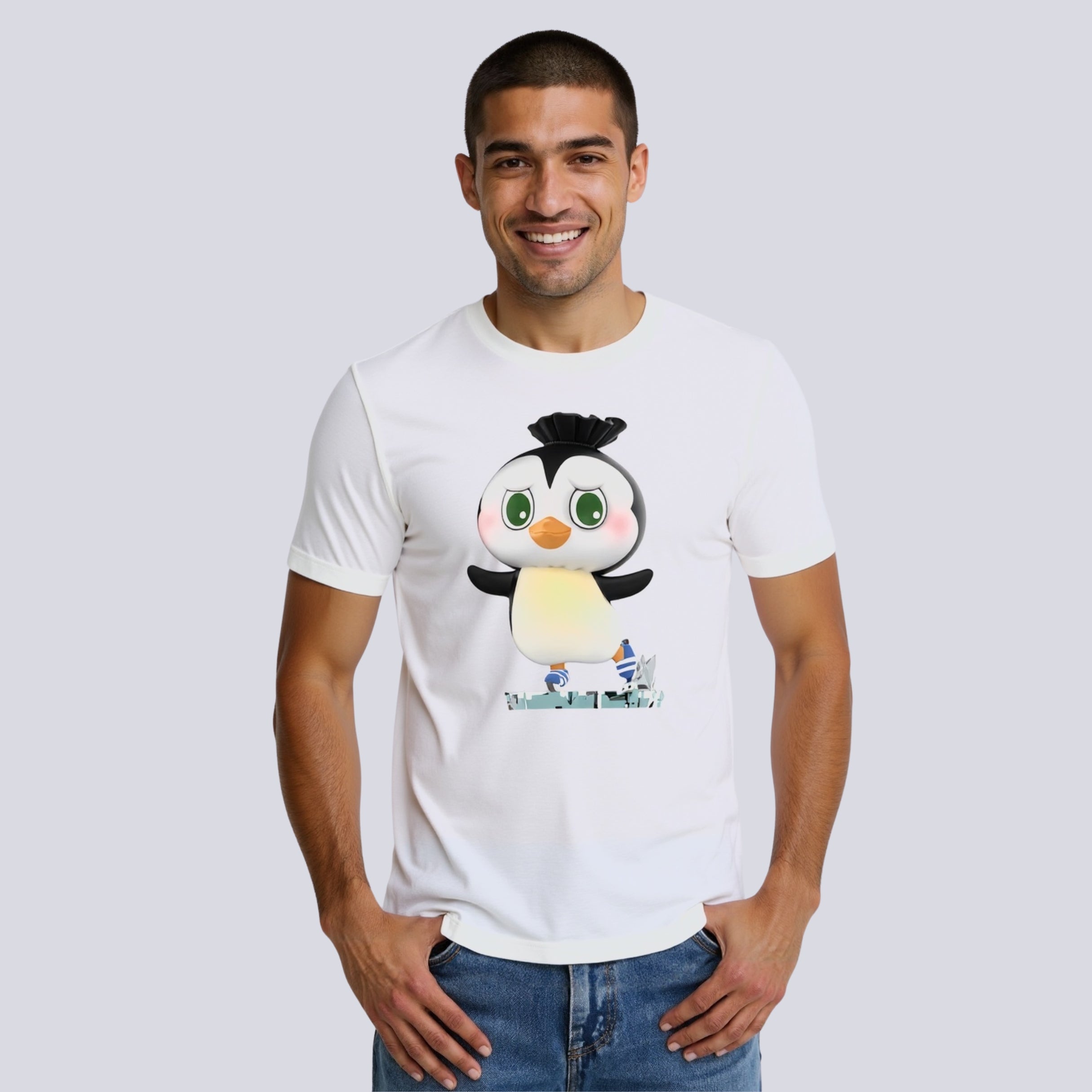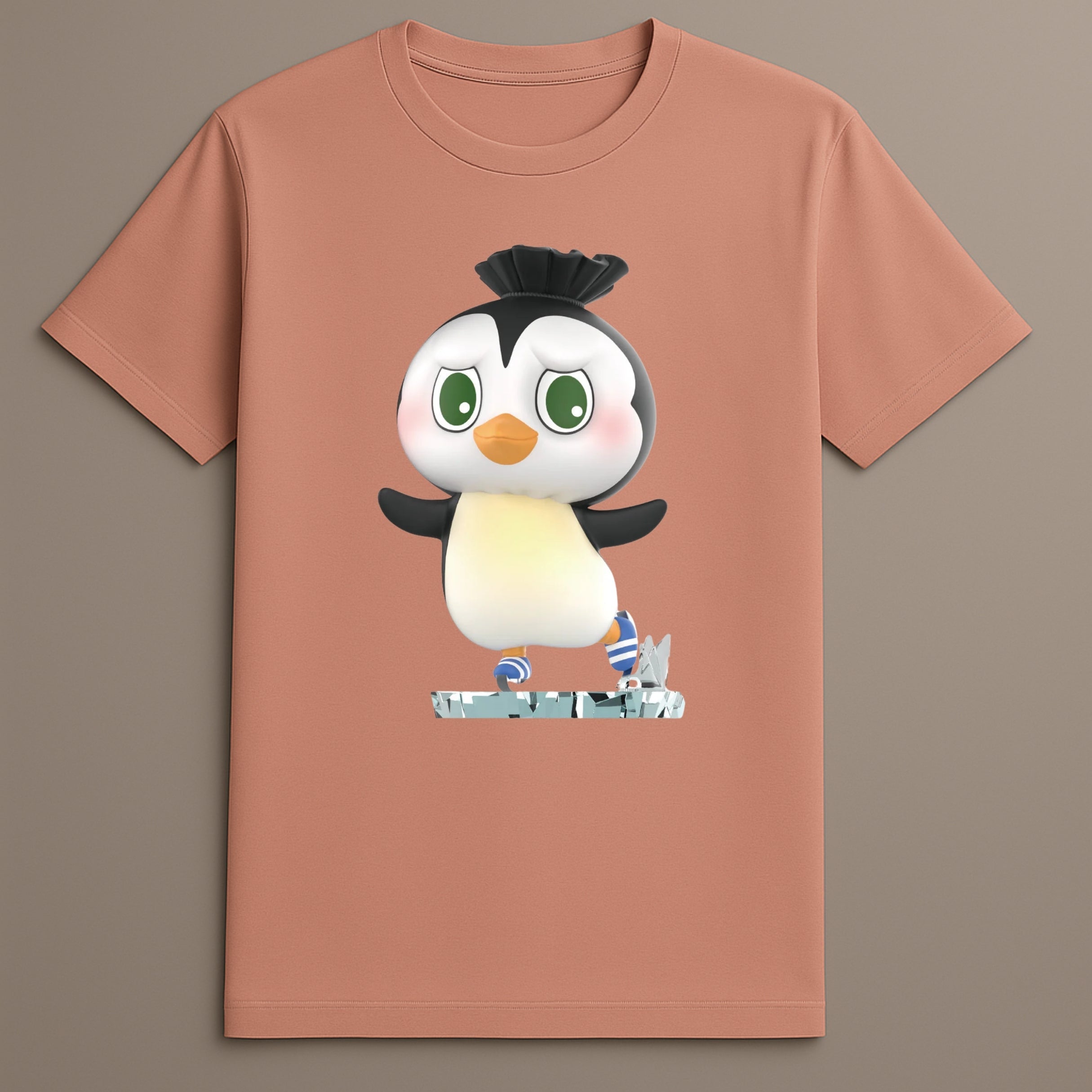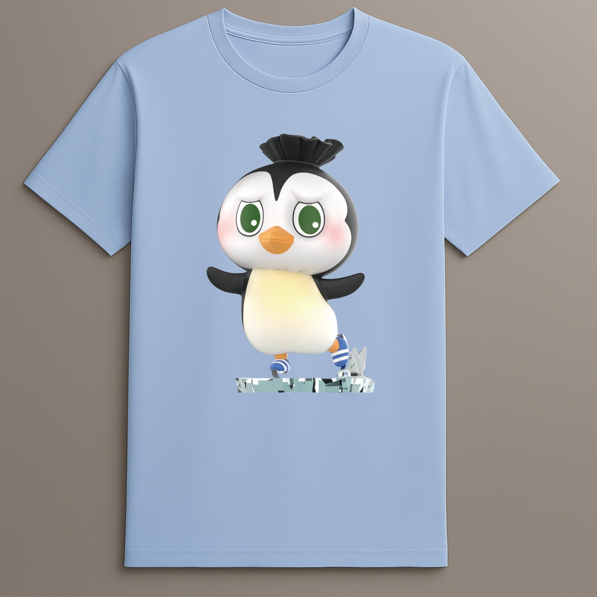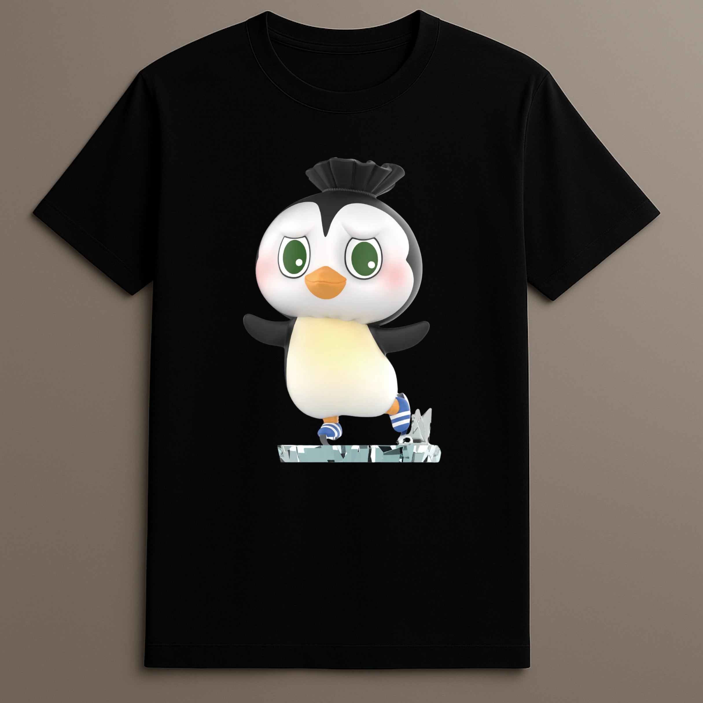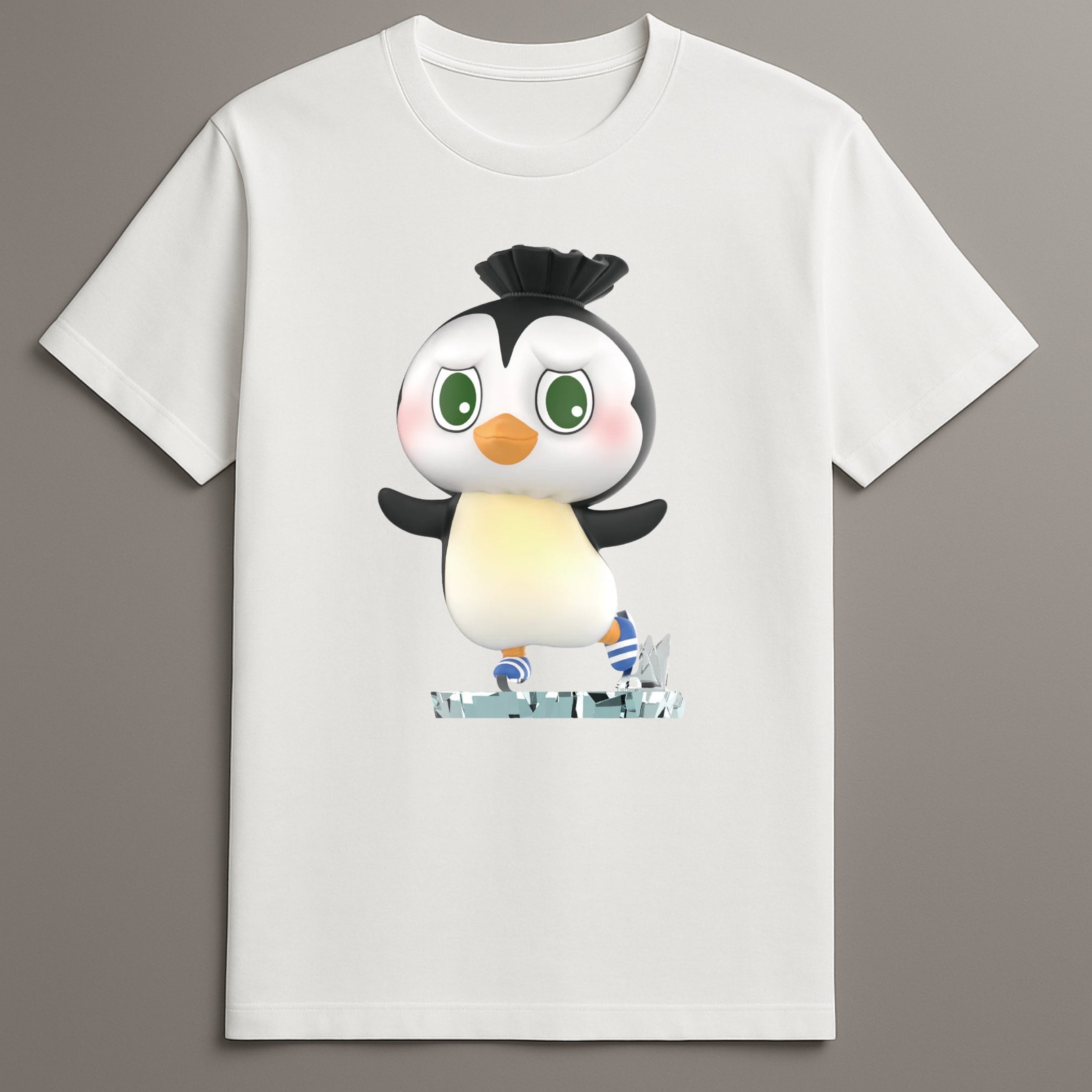 The Penguin Skating Tshirt adds cool charm and soft movement to your wardrobe. Its detailed skating penguin sits centered with striped skates and motion in every line. Made from a spandex blend and shaped for comfort, it works across colder seasons. Whether layered or worn alone, this tee keeps your outfit fun but smooth. Let this tee be your winter visual go-to. The design is calm but expressive, light but clear. Choose the Penguin Skating Tshirt for everyday wear that moves with you.