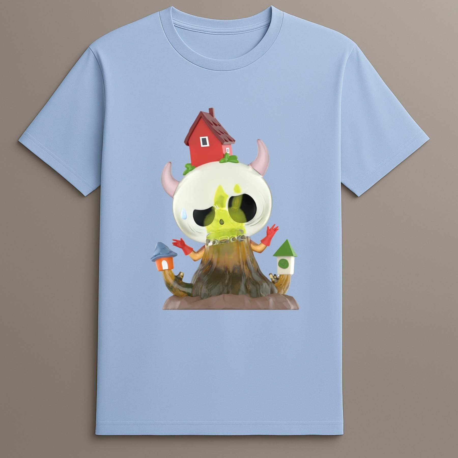 - The Labubu Tree Spirit Tshirt is for people who enjoy light visual expression. It centers a masked character among forest details. The houses and horns give structure to the idea.