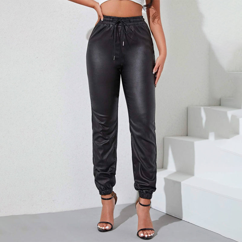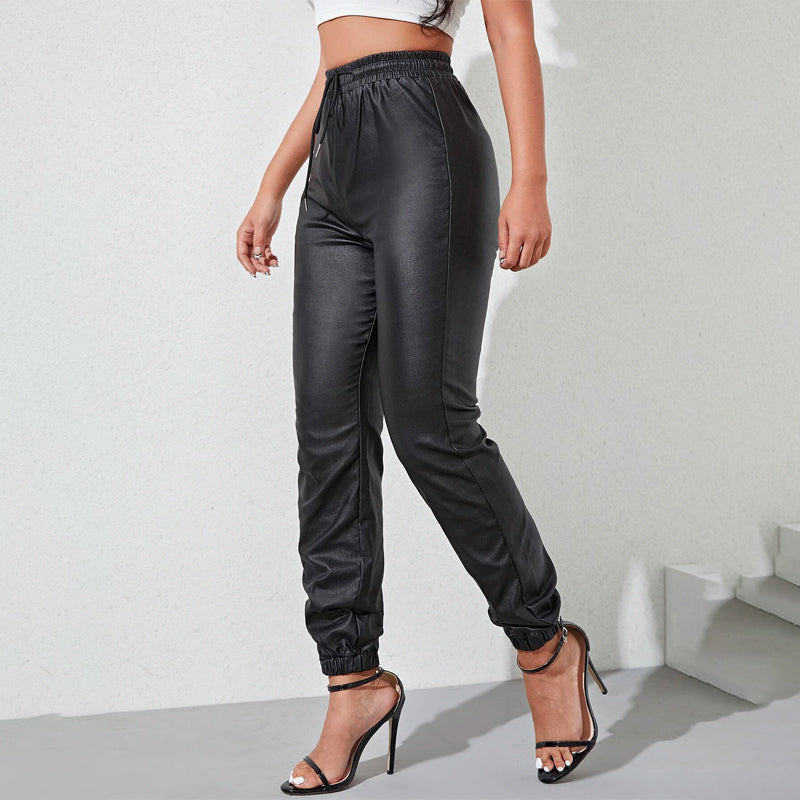 Leather Drawstring High Waisted Jogger Jeans
