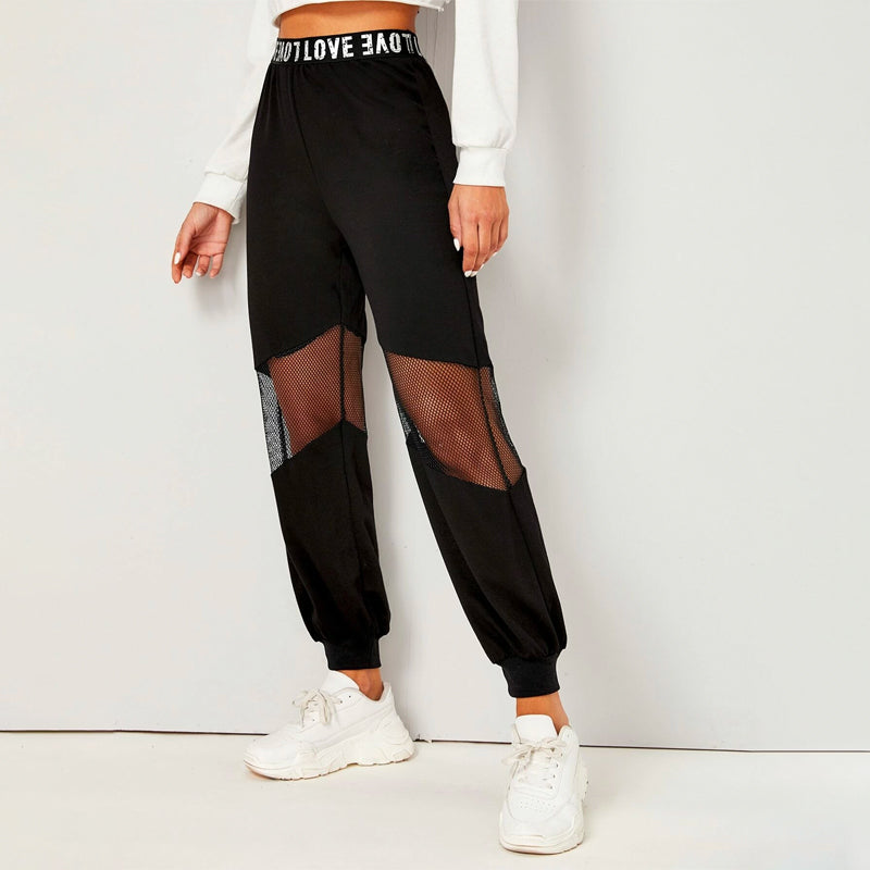 A must-have pair of sweatpants, Letter Graphic Waist Net Panel Pants are a wardrobe staple that you can wear with anything. Either as an essential layer piece or just to add some style and casual flair, these sweatpants have it all. This is a great option for the gym, running around town, or just hanging out on the couch at home.