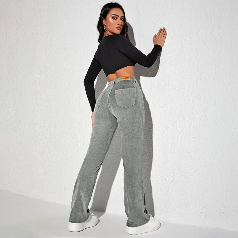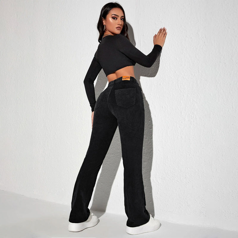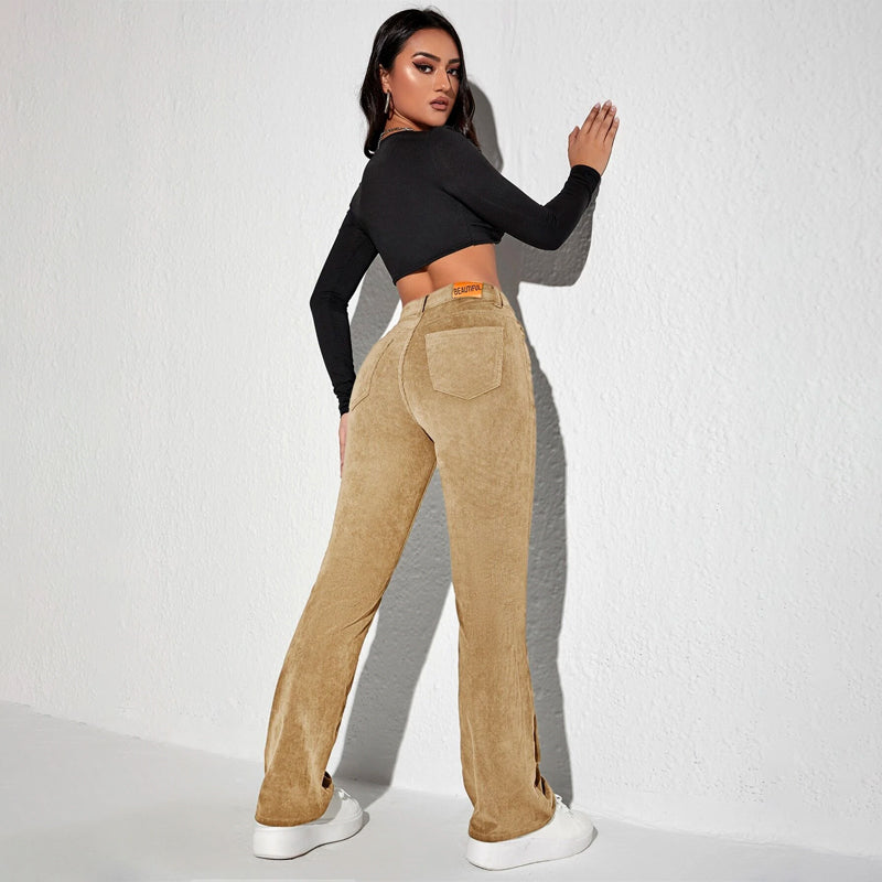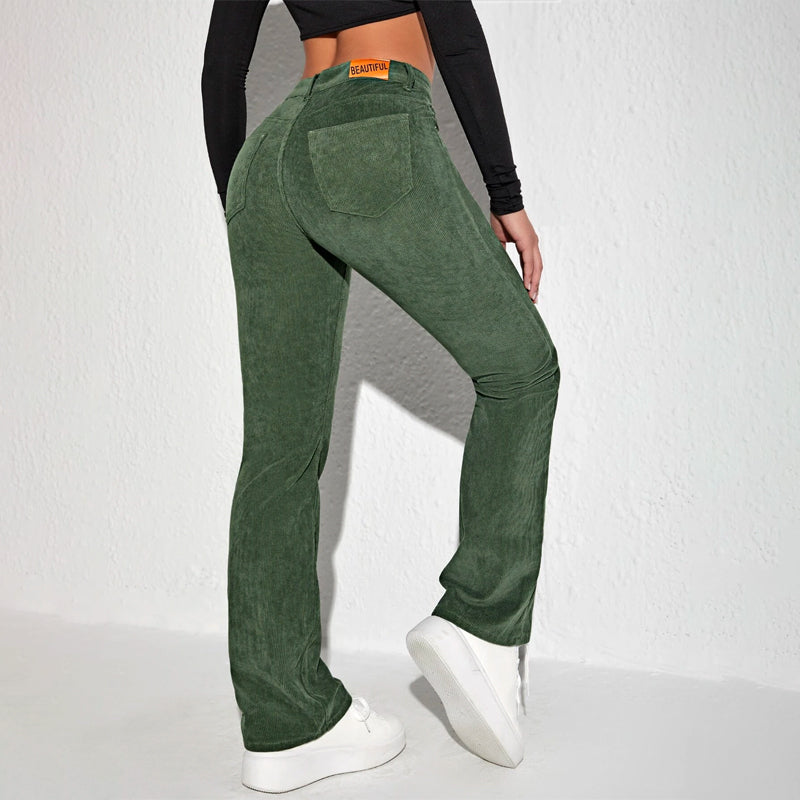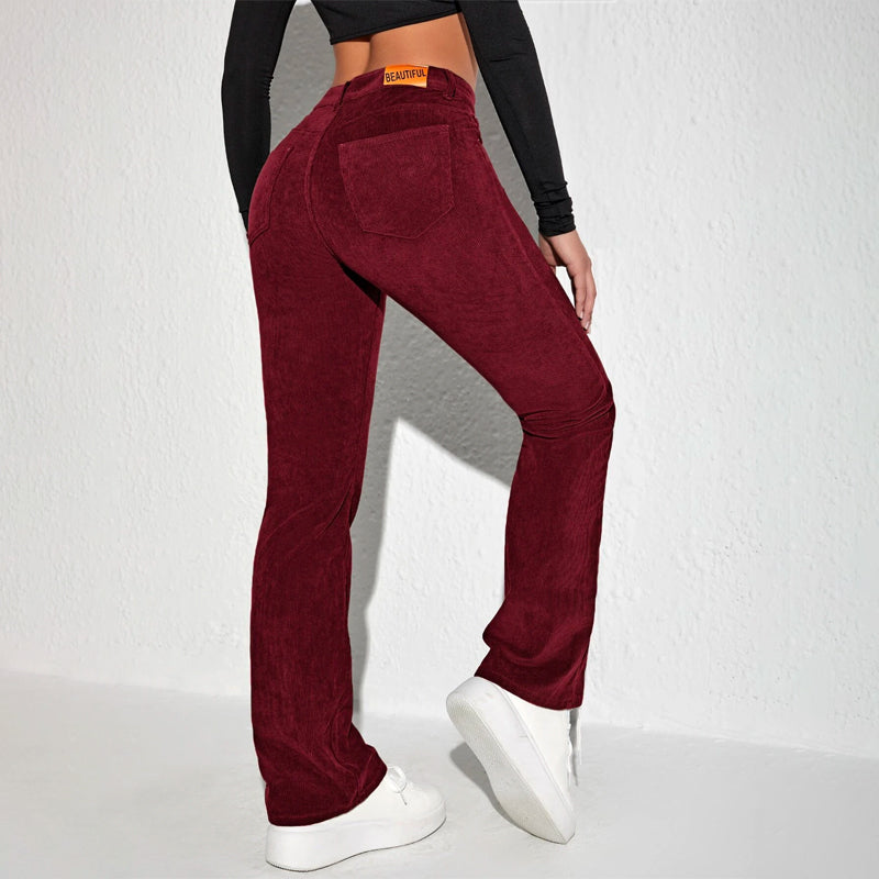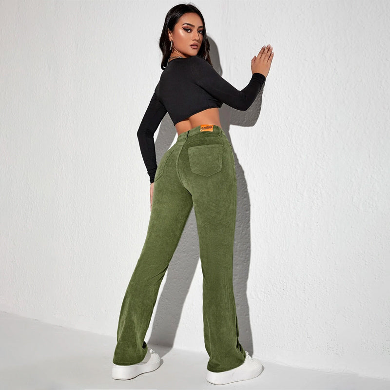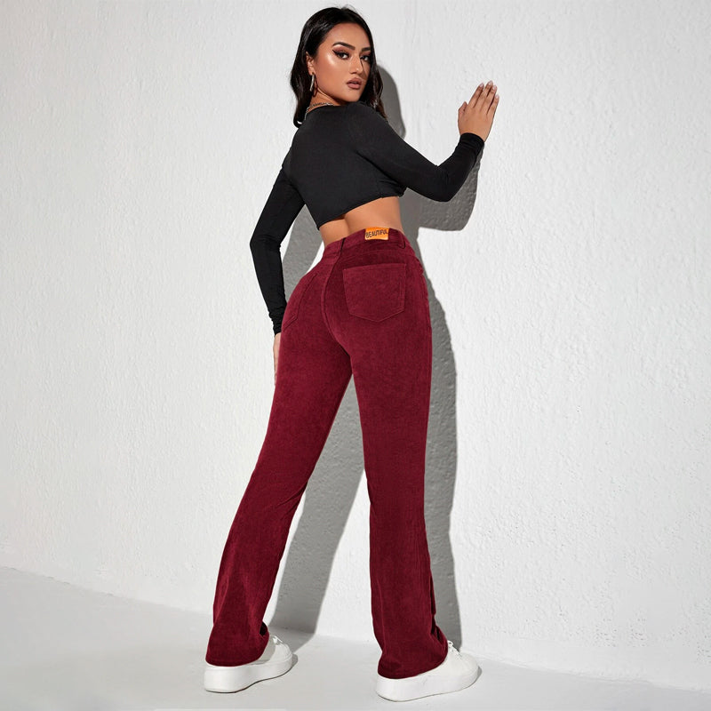 Letter Patched Flare Leg Pants are made of medium stretch corduroy and feature patched details. The classic and casual flare leg has a zipper fly closure and patch pockets. Pair with a button-down shirt and get ready to enjoy the day in comfort! The material makes it extremely comfortable and flared legs make them stylish.