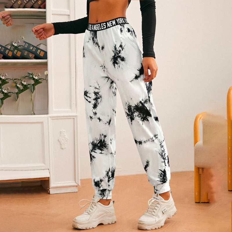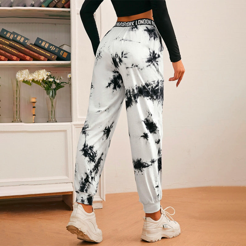 Letter Tape Waist Tie Dye Sweatpants