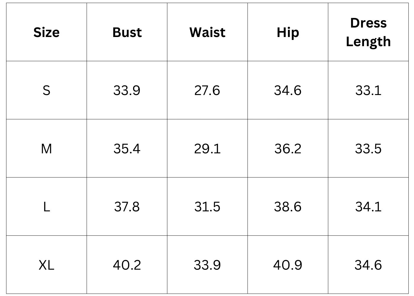 Size Chart(inch):
