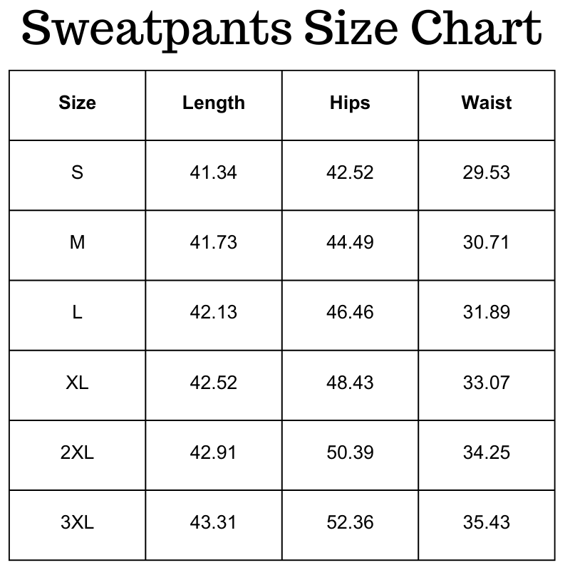Size Chart (inches):