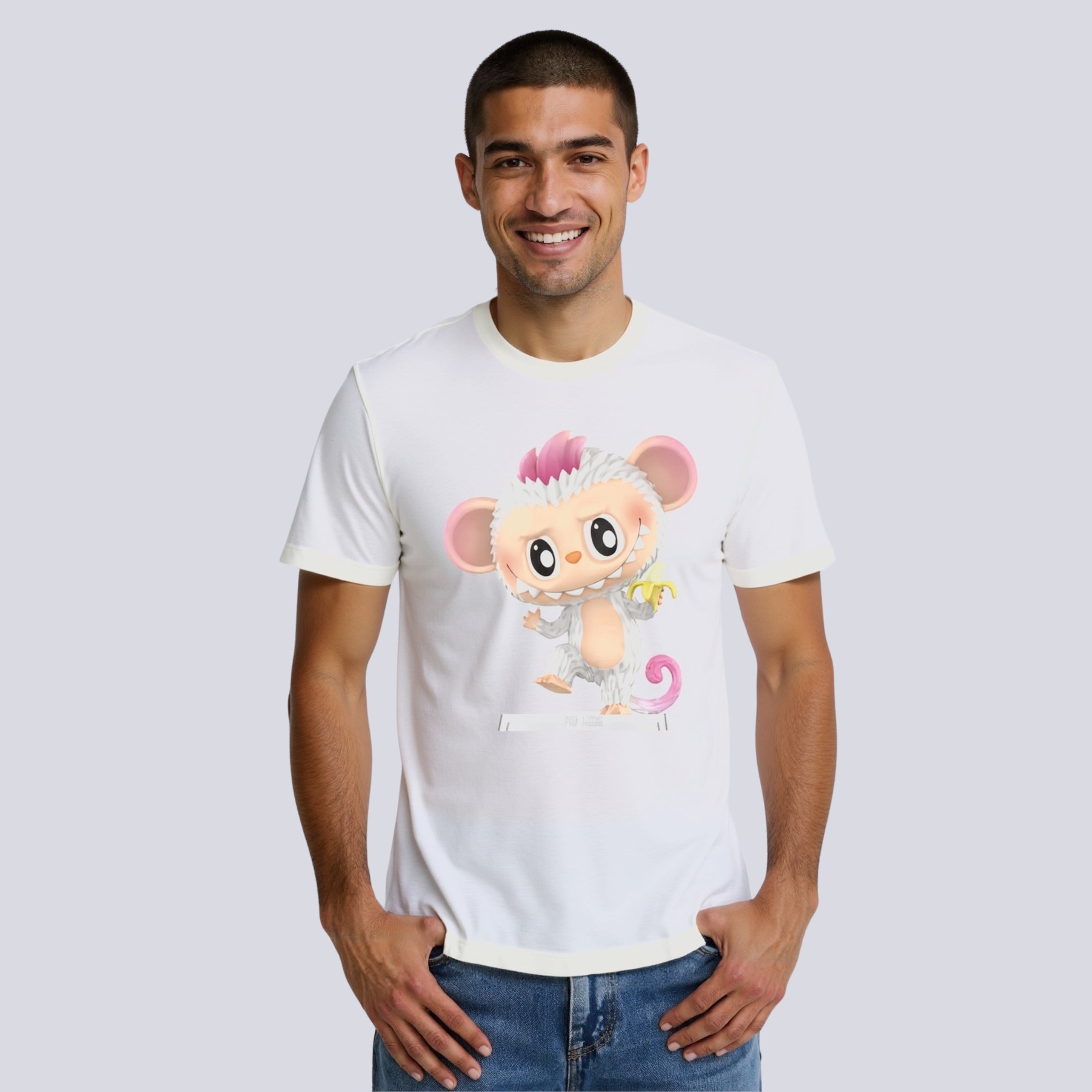 Labubu Monkey Character Tee: Showcases the unique Labubu art style, offering a fresh twist on animal graphic tees.