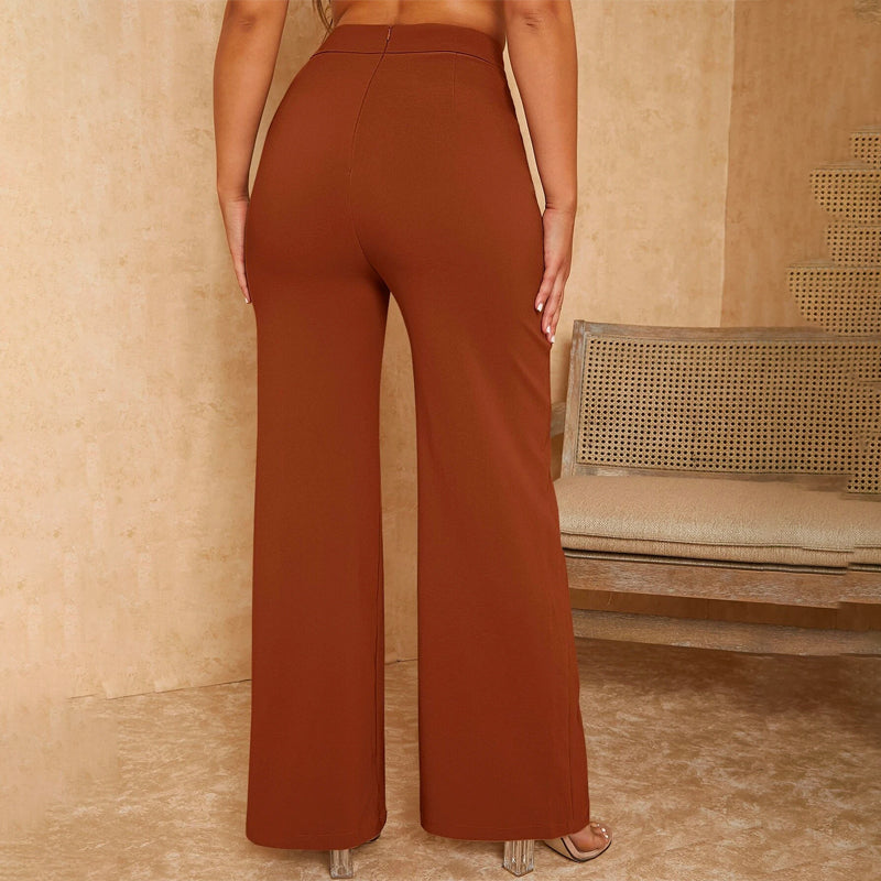 These Overlap Waist Seam Front Palazzo Pants are made from polyester for all-day comfort and feature a high waist and asymmetrical design.  The knee length is flattering on most body types but tends to work better for shorter figures. These pants also feature a button waist and zipper for utmost comfort.