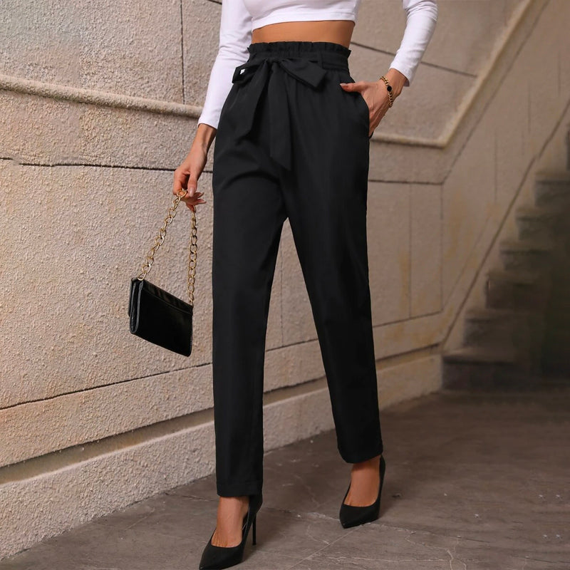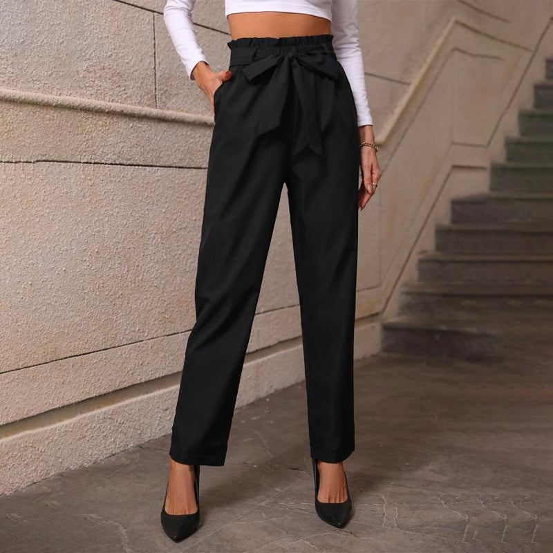 Paperbag Waist Belted Pants are great pants for everyday wear. They feature a straight leg, slant pockets, and an elastic waist that are designed to keep you looking your best on or off the court. The pants also have belted waist, pockets, and a regular fit. The material makes them extra comfortable for everyday wear.