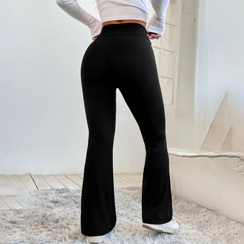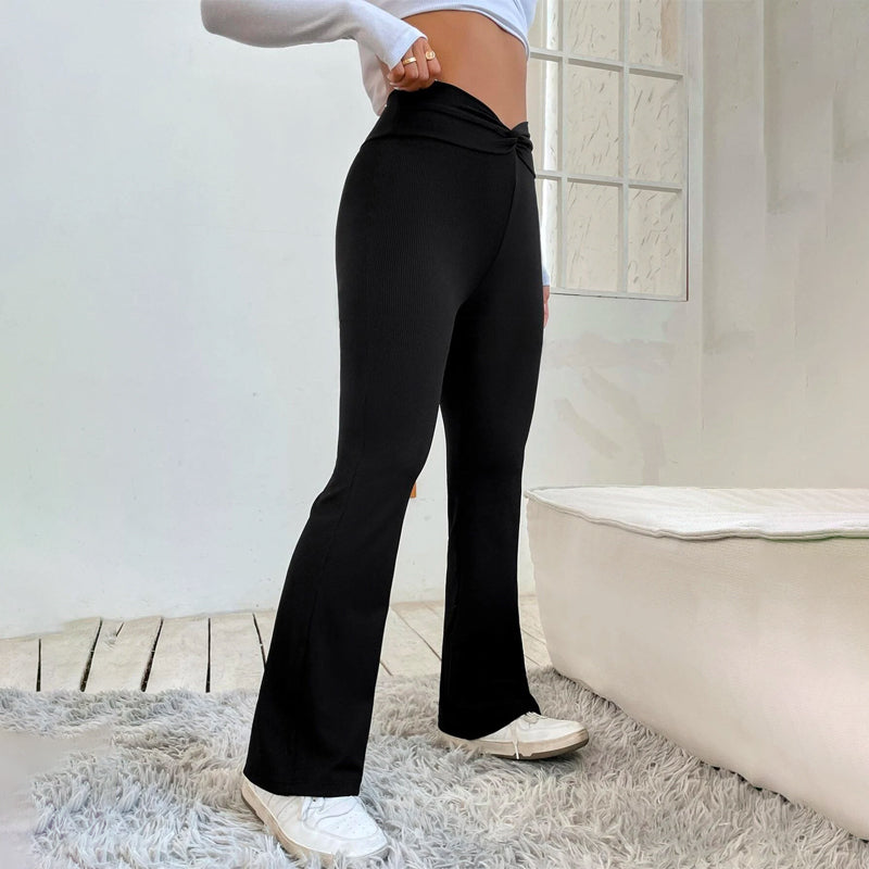 Petite Overlap Waist Flare Leg Pants feature a high waist, adjustable elastic material on the back and side, plus a subtle design of the fabric. These pants are perfect for a day at the office or running errands, these sleek, stretchy pants ensure you stay comfortable all day long.