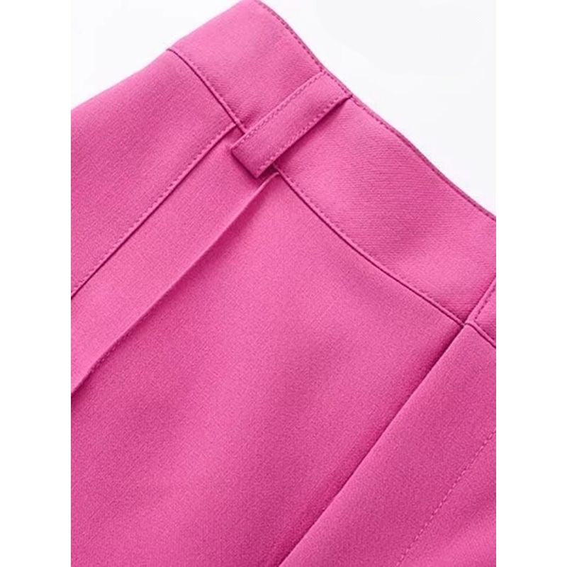 This Pink High Waist Zipper Fly Straight Pant is perfect for you if you're seeking for something that may offer you both elegance and comfort. These retro-inspired pants are both very cozy and non-stretch. These pants are made of high-quality polyester and are simple to wash in a washing machine. From the four sizes that are offered, pick your favorite.