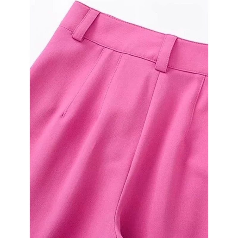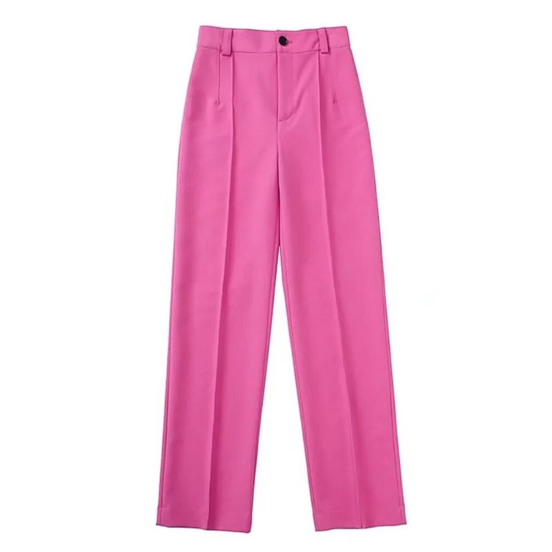 Pink High Waist Zipper Fly Straight Pant