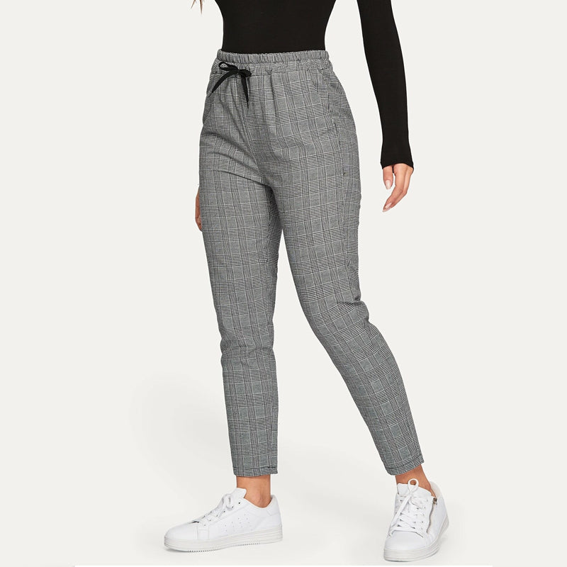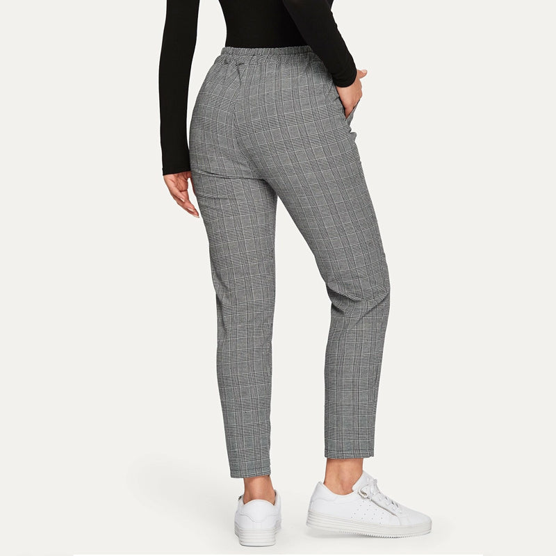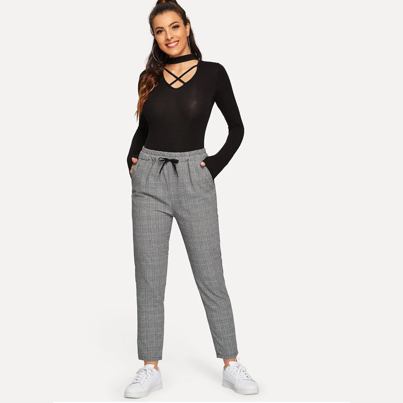 Plaid Drawstring Ankle Cut Pants are a chic pair of pants that are comfy and versatile, so you can mix them up with a variety of tops to keep you looking professional. These feature a drawstring waist which makes them stand out and the polyester fabric makes them comfortable to be worn anywhere.