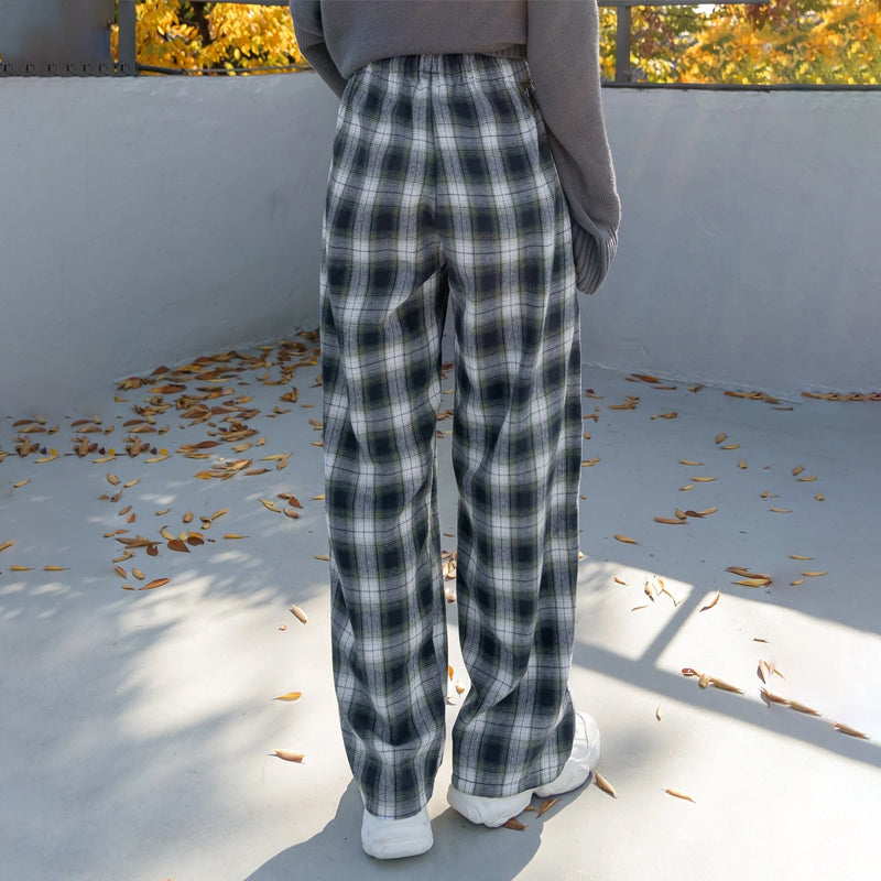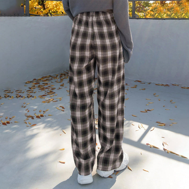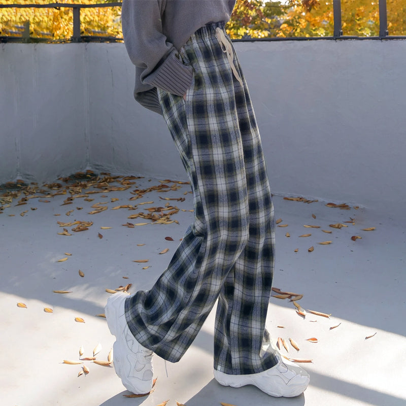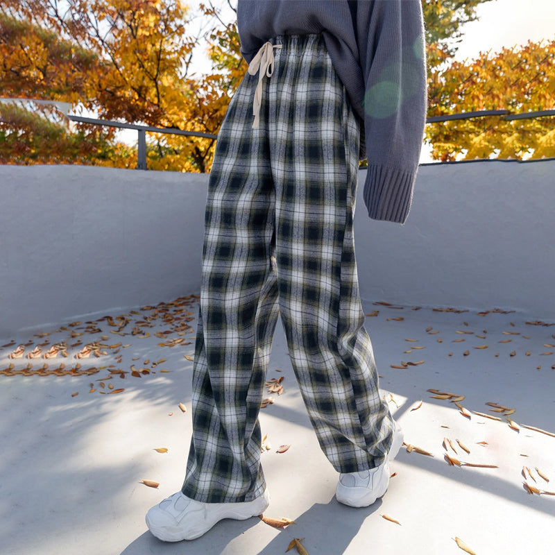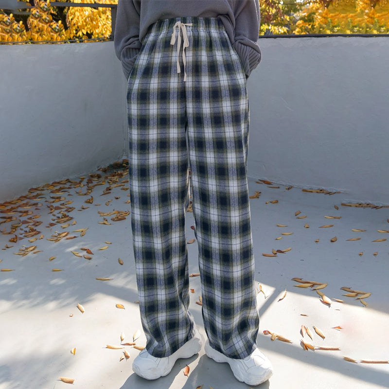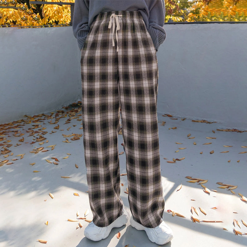 Plaid Drawstring Waist Pants