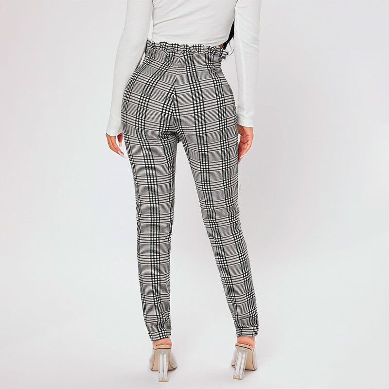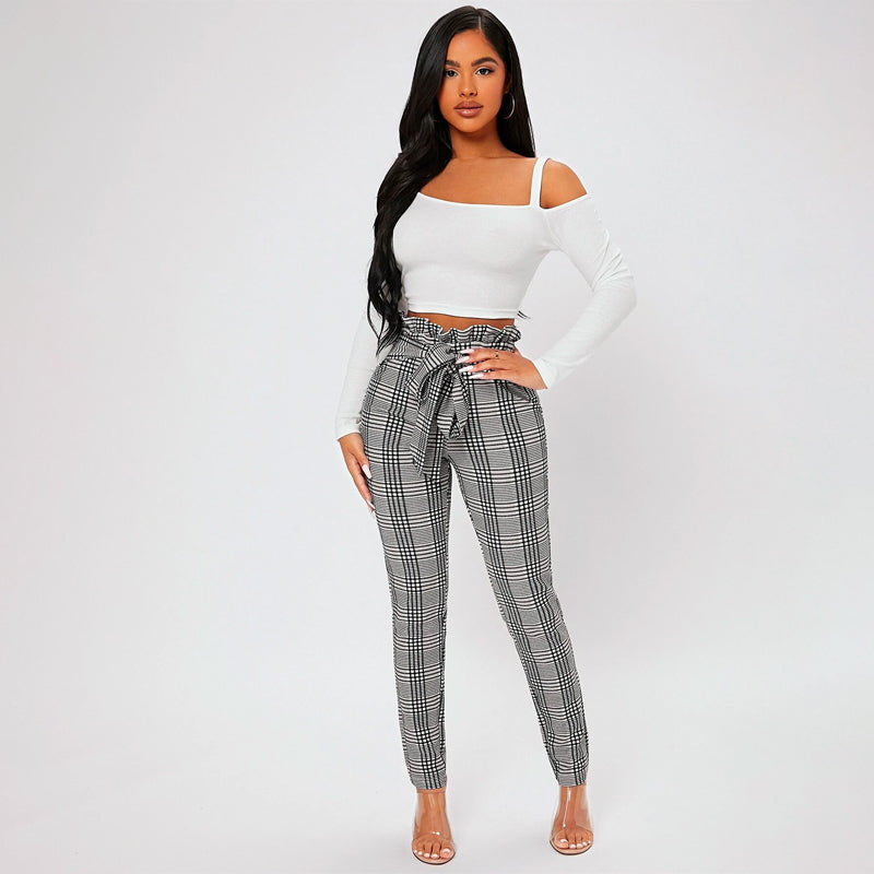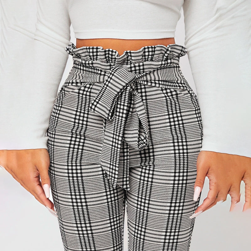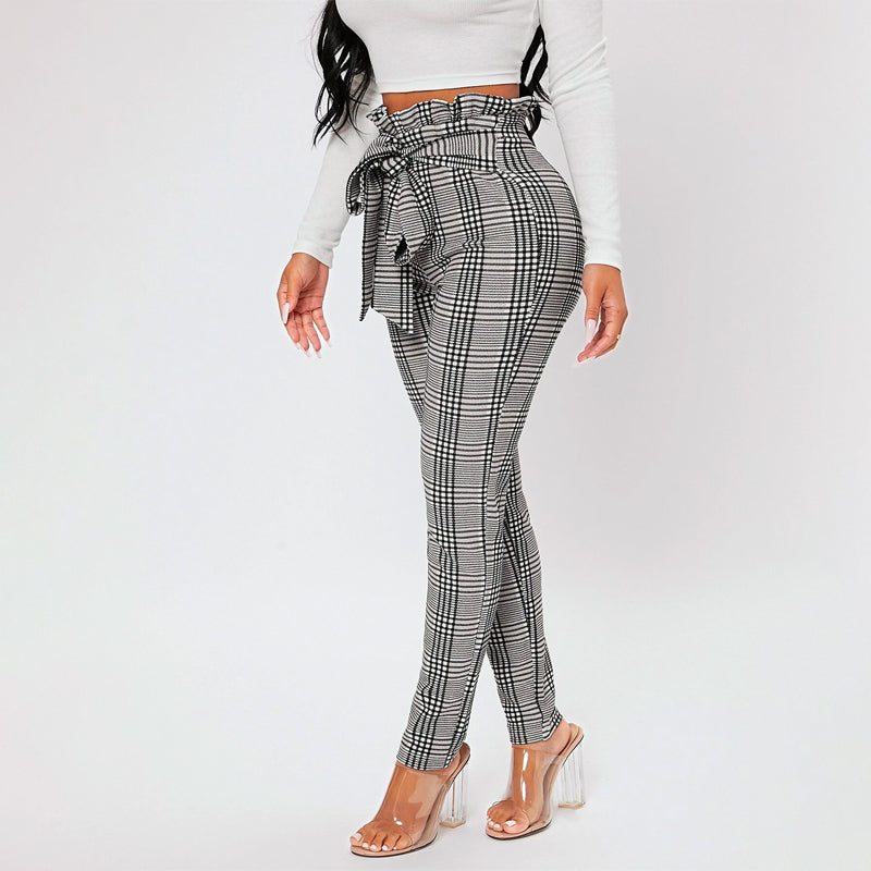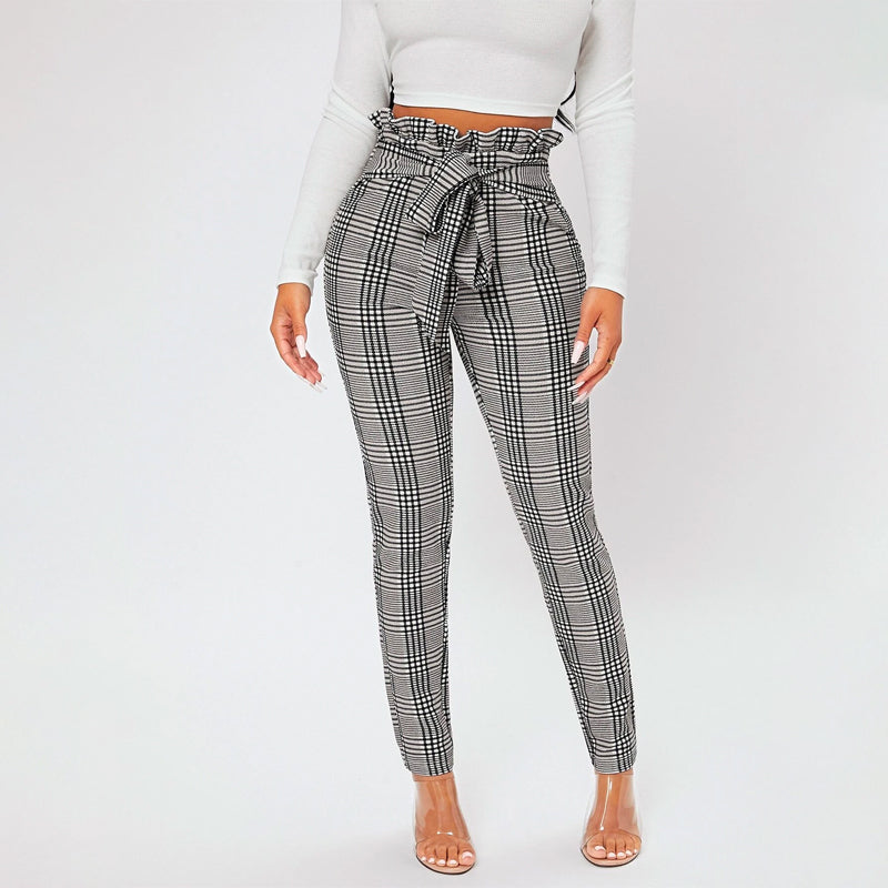 Featuring an elastic waist for an exact fit and functional pockets, Plaid Print Petite Waist Knot Front Pants are versatile enough to be worn all year round. These women's pants have a lightweight, stretchy fabrication that ensures a comfortable fit and gentle movement. These elegant pants have a paper bag waist and skinny fit.