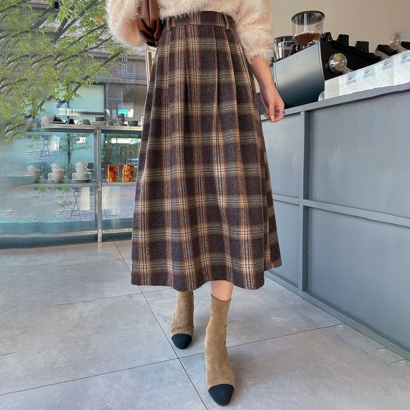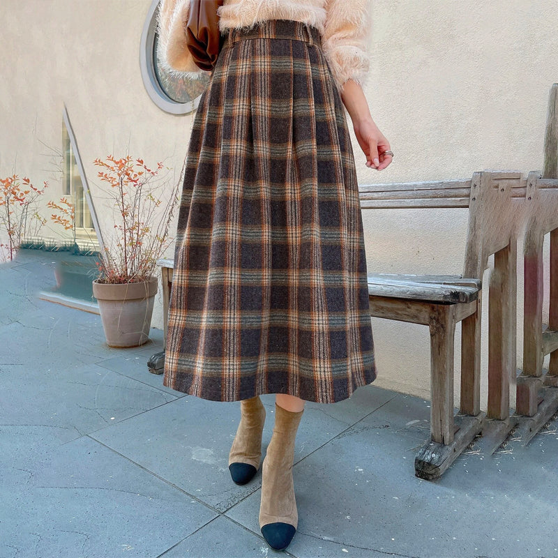 Plaid Print Pleated Detail Skirt