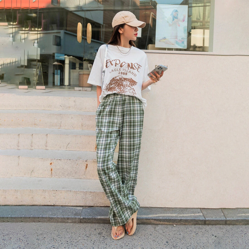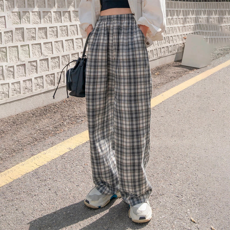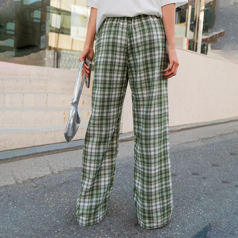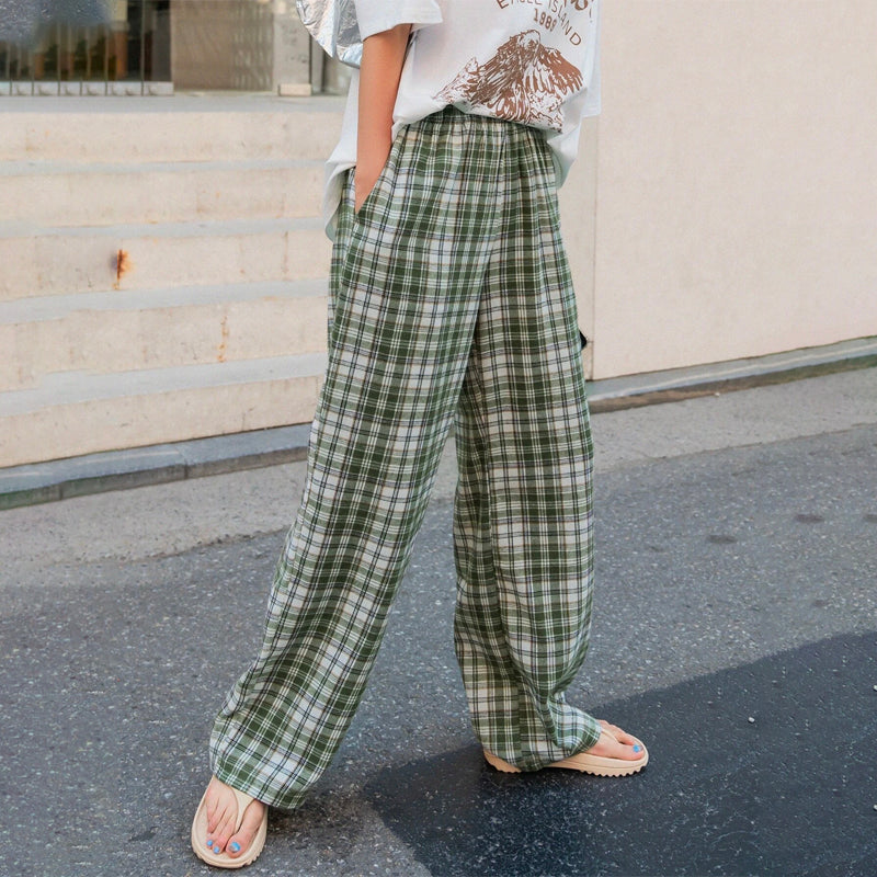 Plaid Slant Pocket Pants are the perfect pair of pants for the office or for casual outings. These pants feature an elastic waistband and wide legs, making them both stylish and comfortable. The casual-style pants are made from lightweight, breathable polyester fabric with an elastic waistband.