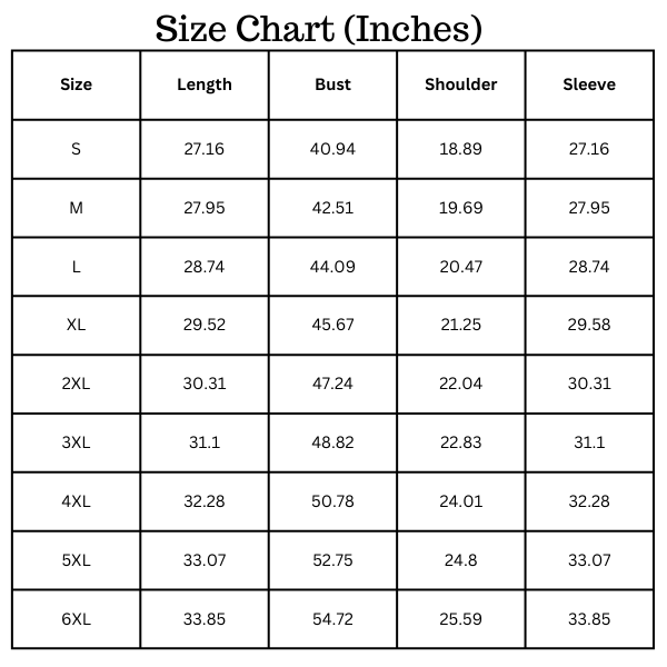 Size Chart(inches):