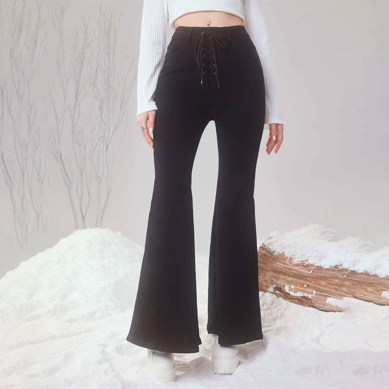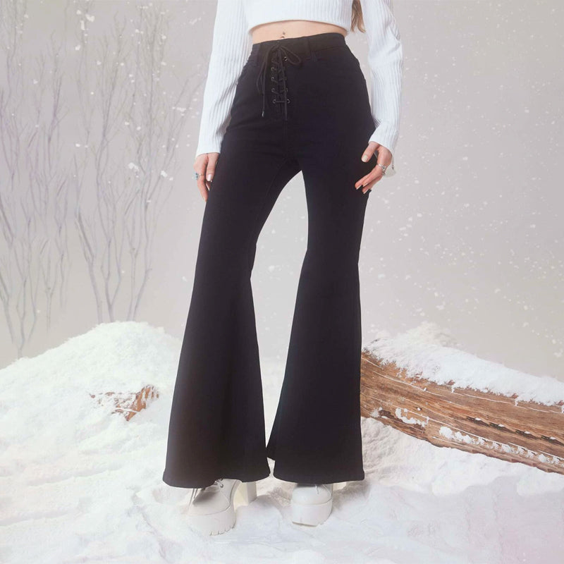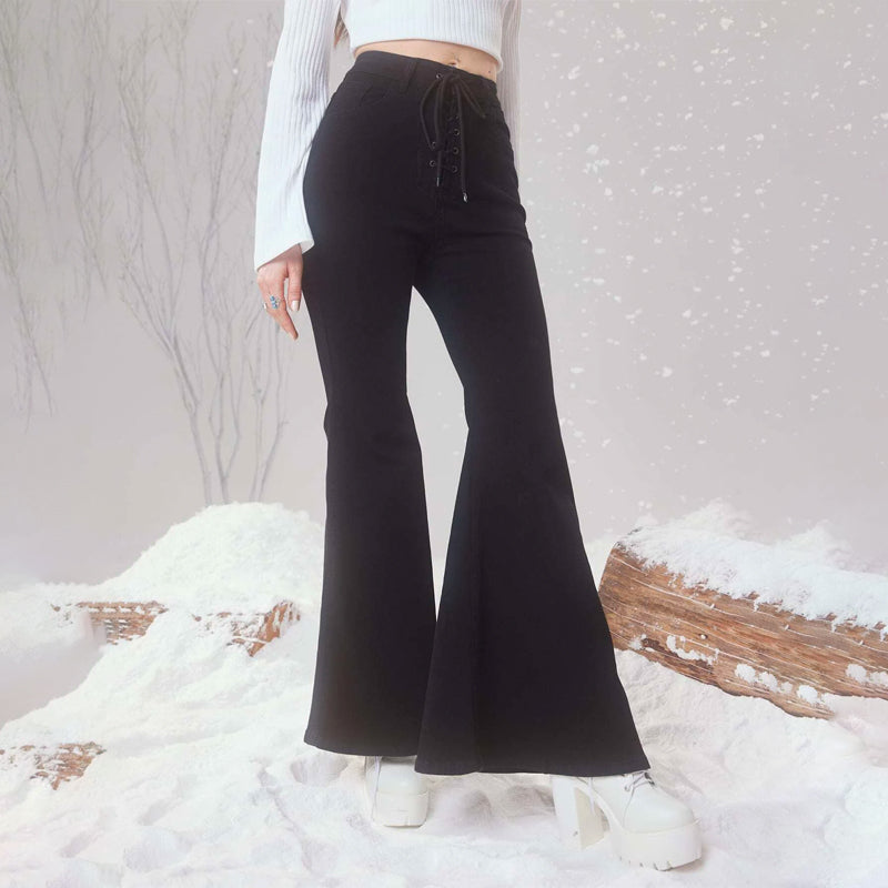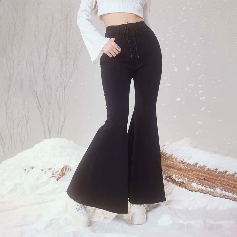 Plain Drawstring Waist Flare Leg Jeans
