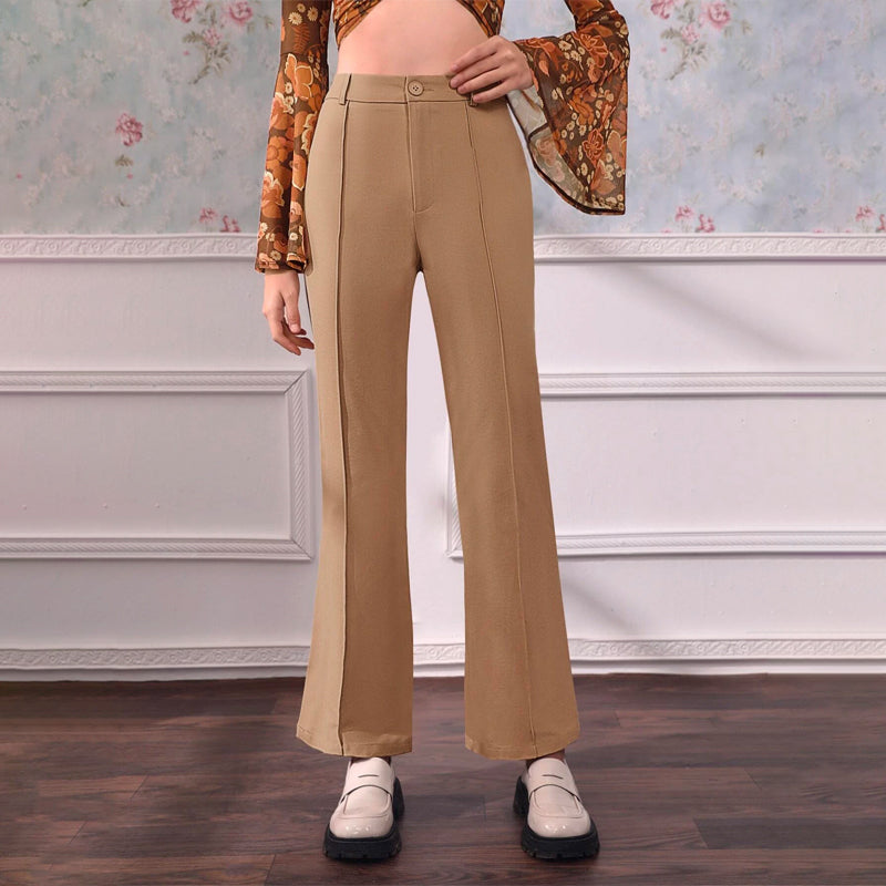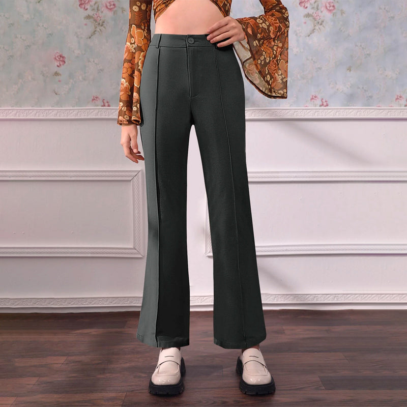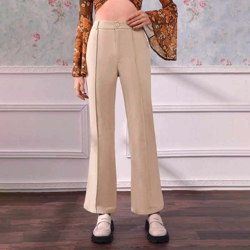 Plain High Waist Seam Detail Flare Leg Pants are so comfortable and easy to wear. They have skinny legs and flared legs, which means they fit elegantly on your body. They are plain and simple with a button closure on the fly, which makes them the perfect addition to any collection.