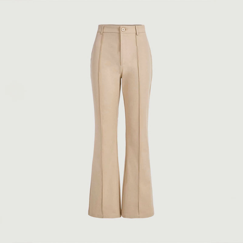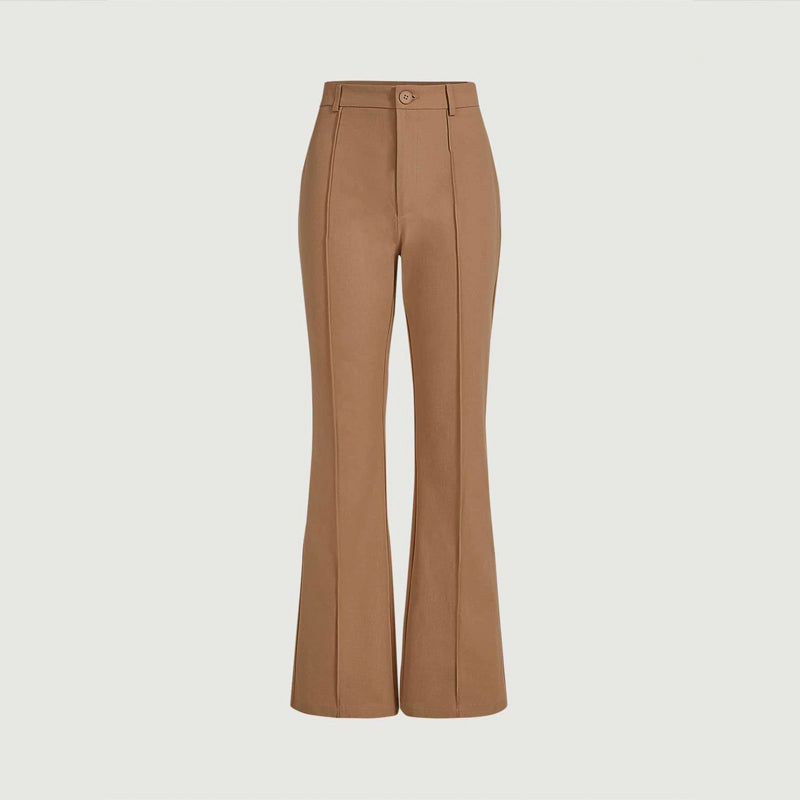 Plain High Waist Seam Detail Flare Leg Pants