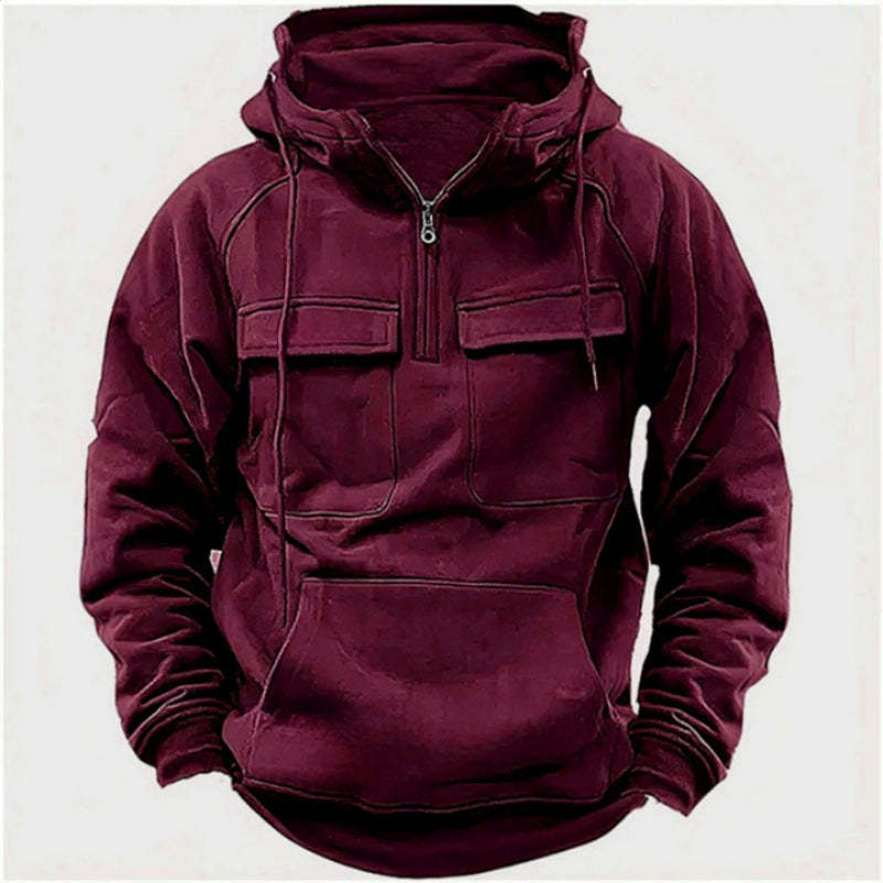 Multiple Pockets: Equipped with a variety of pockets, including a spacious kangaroo pouch and secure chest pockets for convenient storage options.