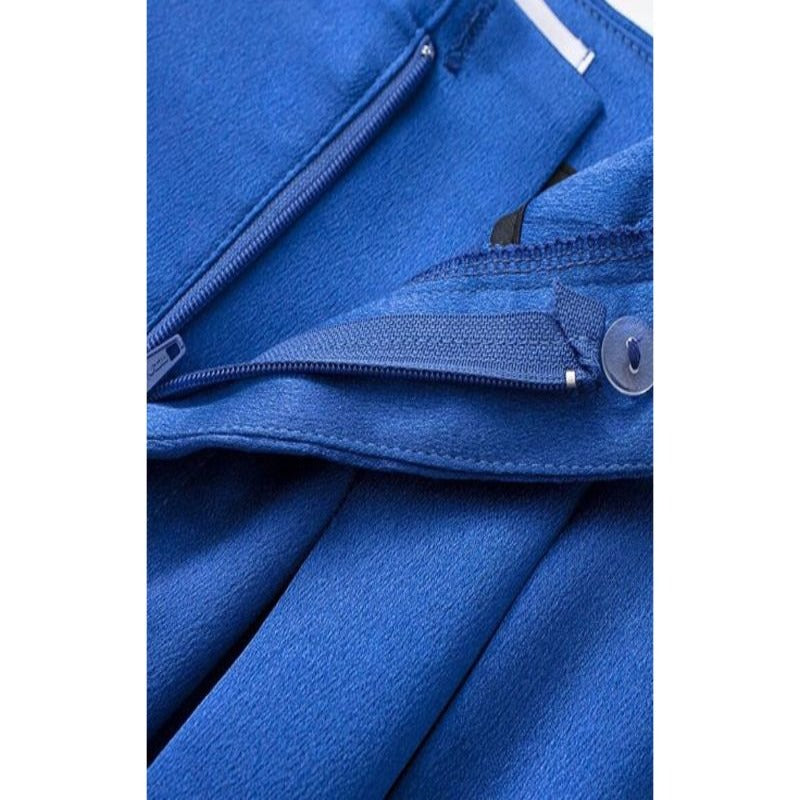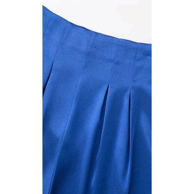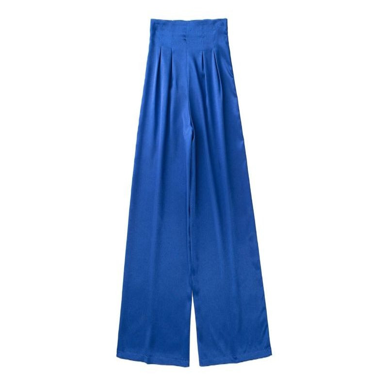 Pleated High Waist Full-Length Satin Pants