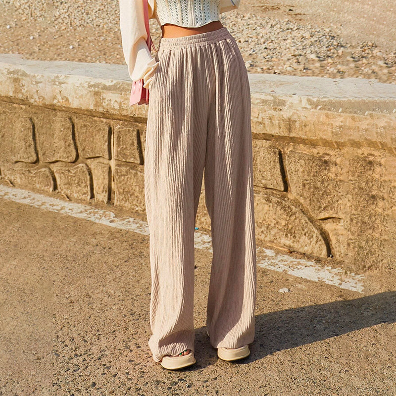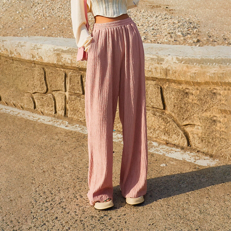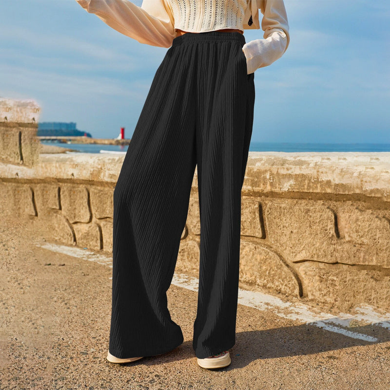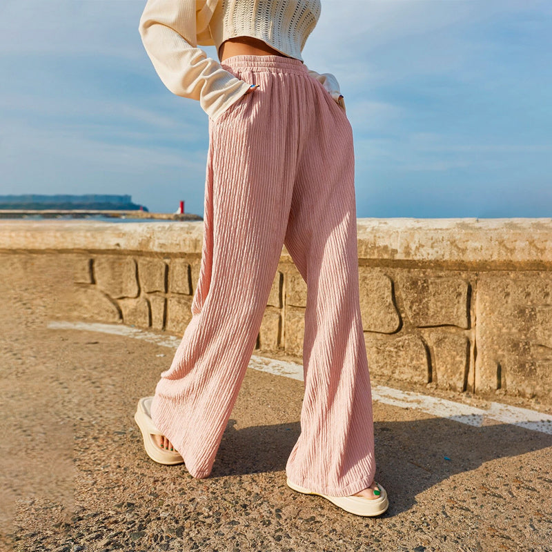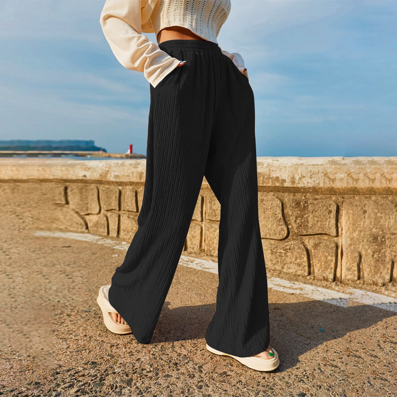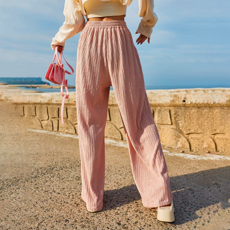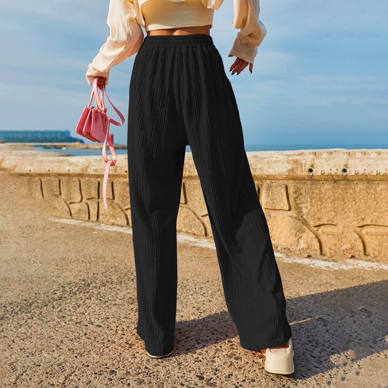 Pocket Straight Leg Pants are made to move with you, and look good doing so. With a high waist, it works well with a shirt that's tucked in and airy. The fabric is soft and thick, plus the drawstring waist lets you adjust the fit. These pants are great for casual wear along with the knotted front. The pockets make them alluring and add an oomph factor.