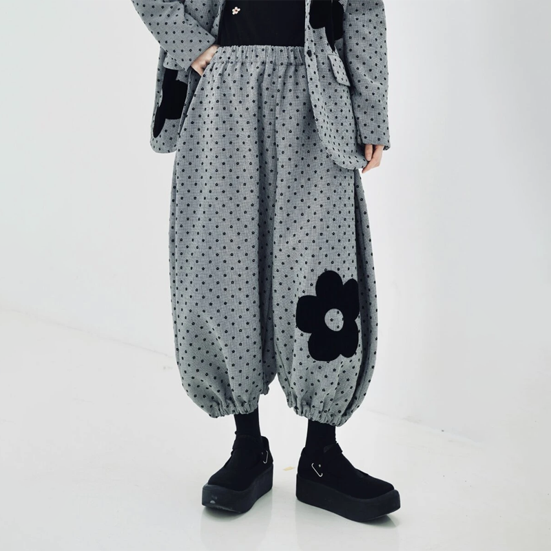 Polka Dot & Floral Print Drop Crotch Pants can make you the talk of the party or everywhere you wear them. These pants feature a floral pattern and crop length which make them look attractive and can easily catch everybody's attention. The material is extremely comfortable and these pants feature a loose fit.