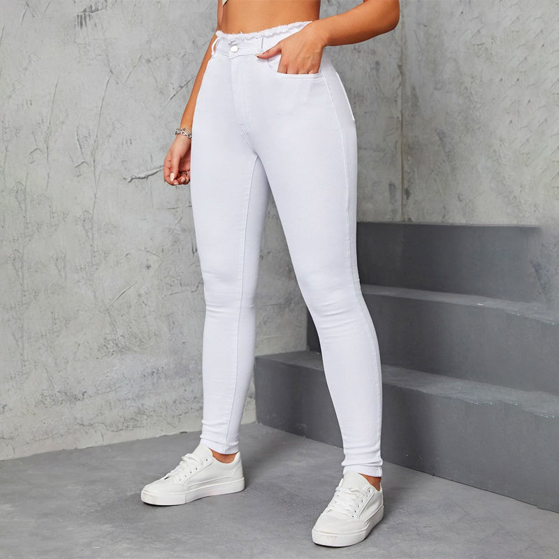 Raw Trim Zipper Skinny Pants are a stylish, comfortable, and versatile pair of pants. The unlined sides give the best fit and freedom of movement. This pair comes in a unique and trendy design to wear anywhere you go. The skinny fit and slight stretch fabric make them suitable for utmost comfort.