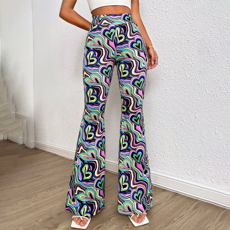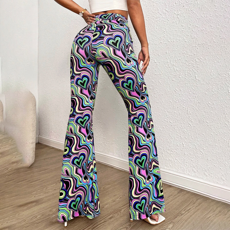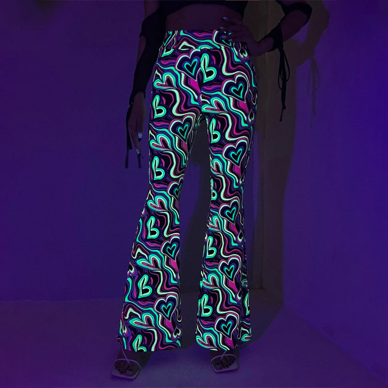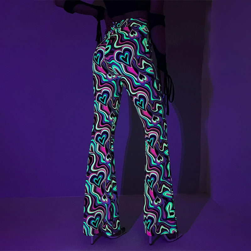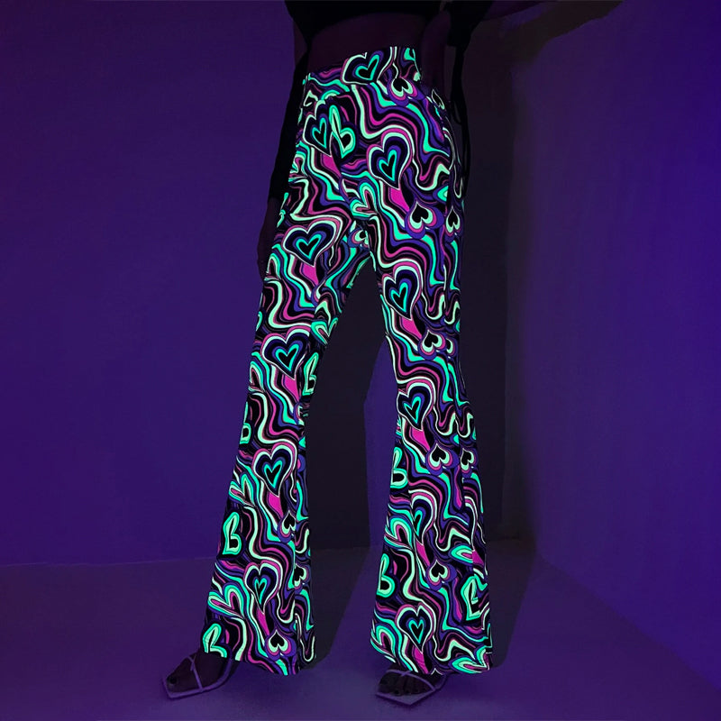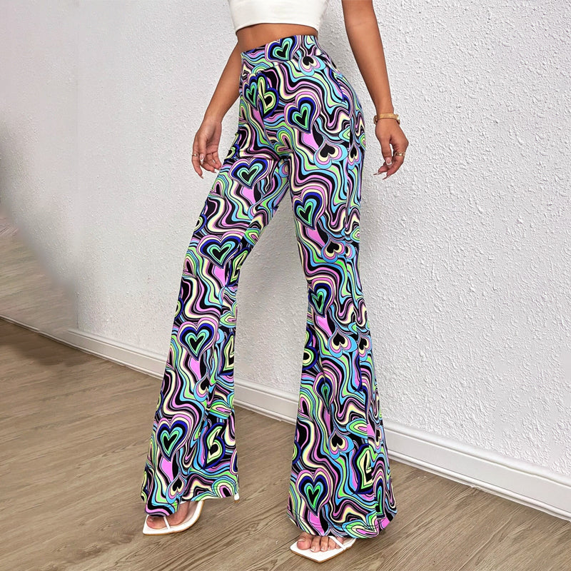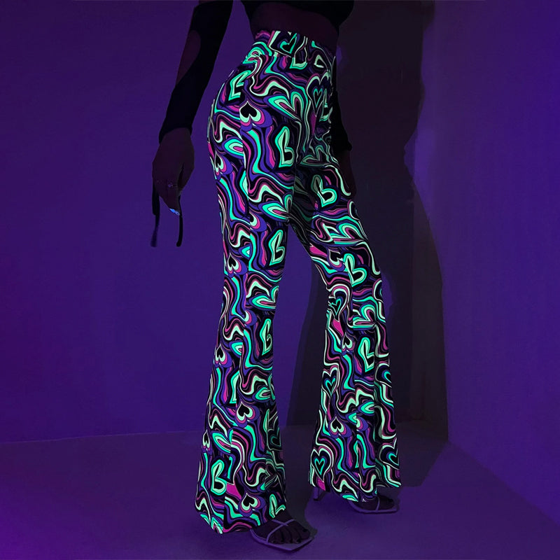 Reflective Allover Print Flare Leg Pants are solid tights that are made from a durable fabric and feature long, flare legs with an elastic waist and button closures at the ankles and leg openings. The marble pattern makes them stylish and makes them stand out from the crowd. The regular fit makes them suitable for daily wear.
