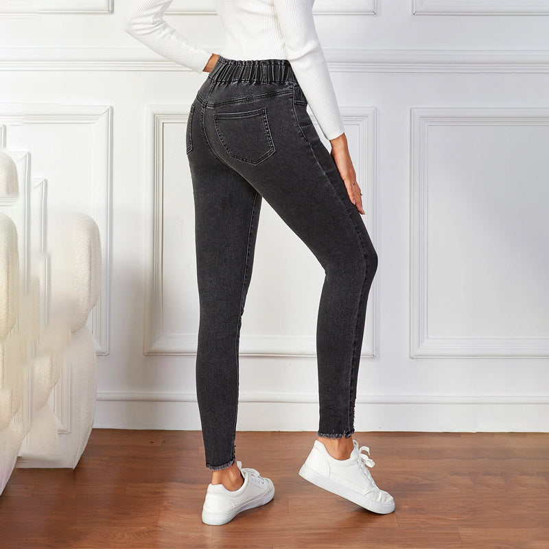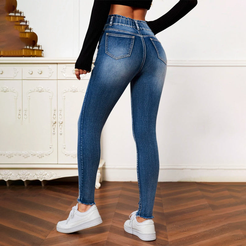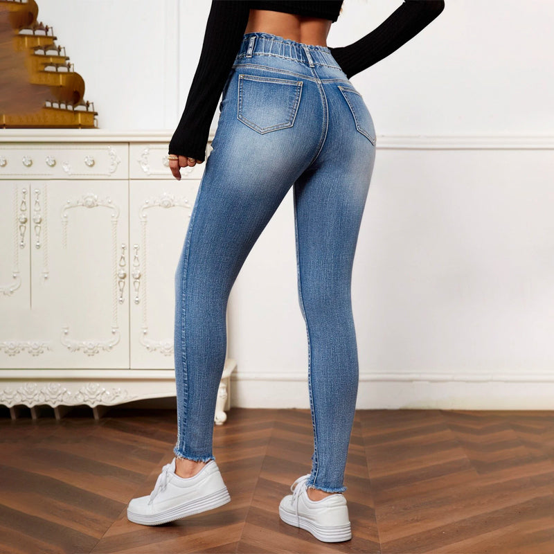 Ripped Frayed Hem Bleach Wash Paperbag Waist Skinny Jeans