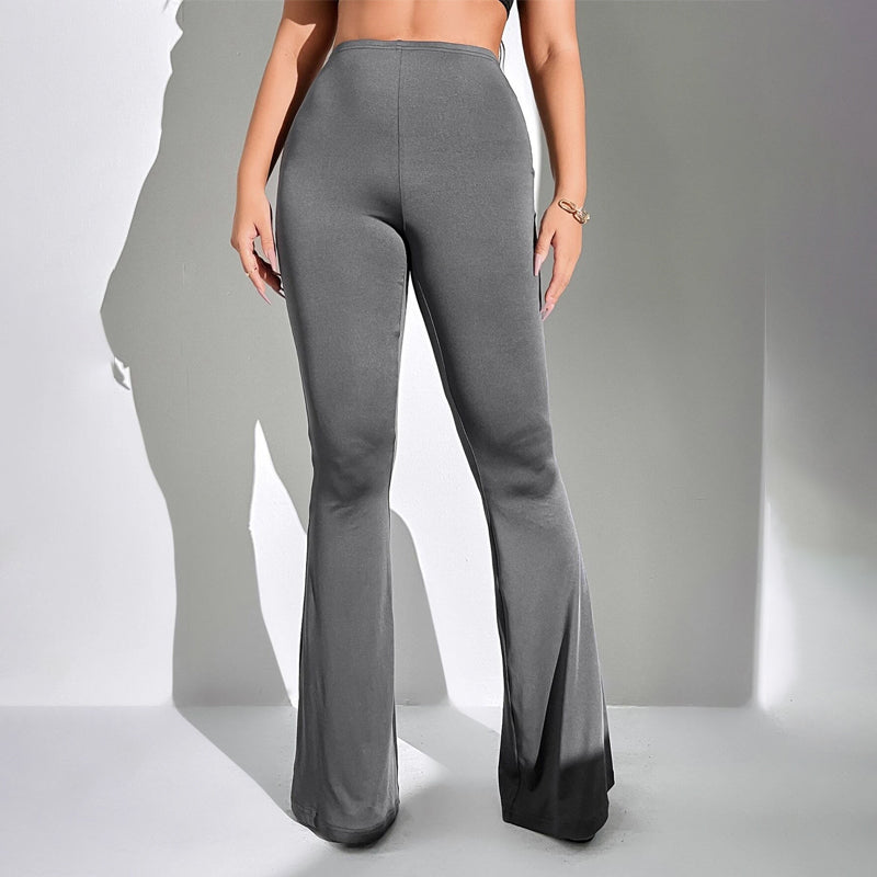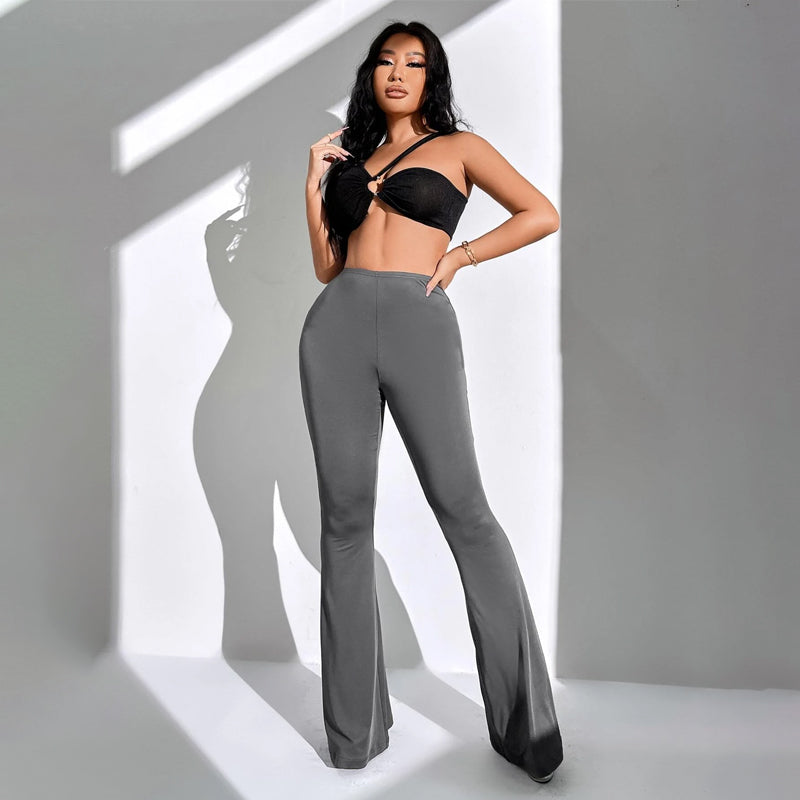 Ruched Back High Waist Flared Leg Pants for the perfect party look! These skinny-fit pants feature a subtle gold metallic design, an elastic waist, and a high waist. The cropped thigh length is essential to complete your elegant look. The flare leg and regular fit along with ruched details make these pants comfortable and stylish.