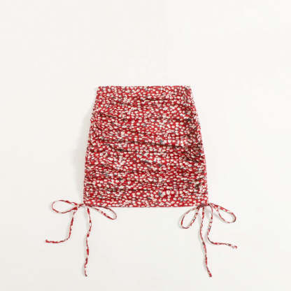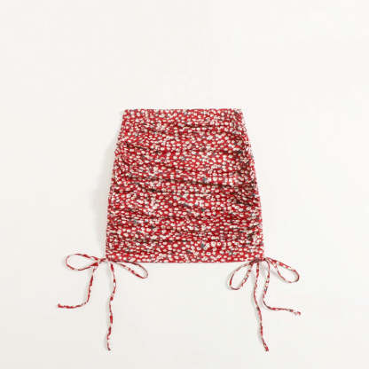 This Ruched Drawstring Side Ditsy Floral Skirt is the perfect addition to your wardrobe. With its lightweight, breathable fabric and drawstring waistband, you can customize the fit of this skirt to flatter your figure. The ruching along the sides and waist adds texture and definition to the skirt, while the ditsy floral print is the perfect way to add a touch of feminine charm. You can easily dress it up for a special occasion or dress it down for a casual look. Whether you're looking for something to wear to the office or a weekend brunch, this skirt will become your go-to piece.
