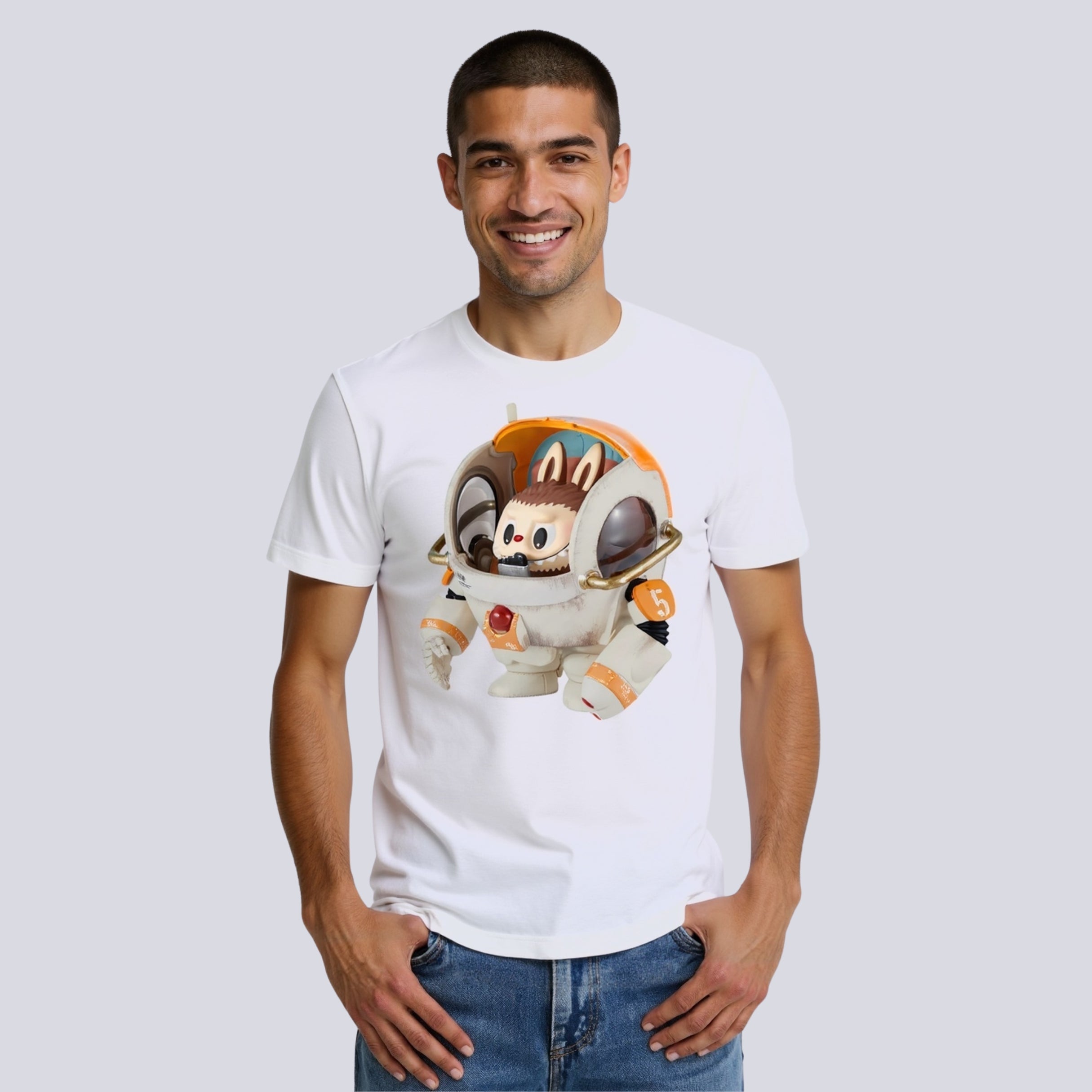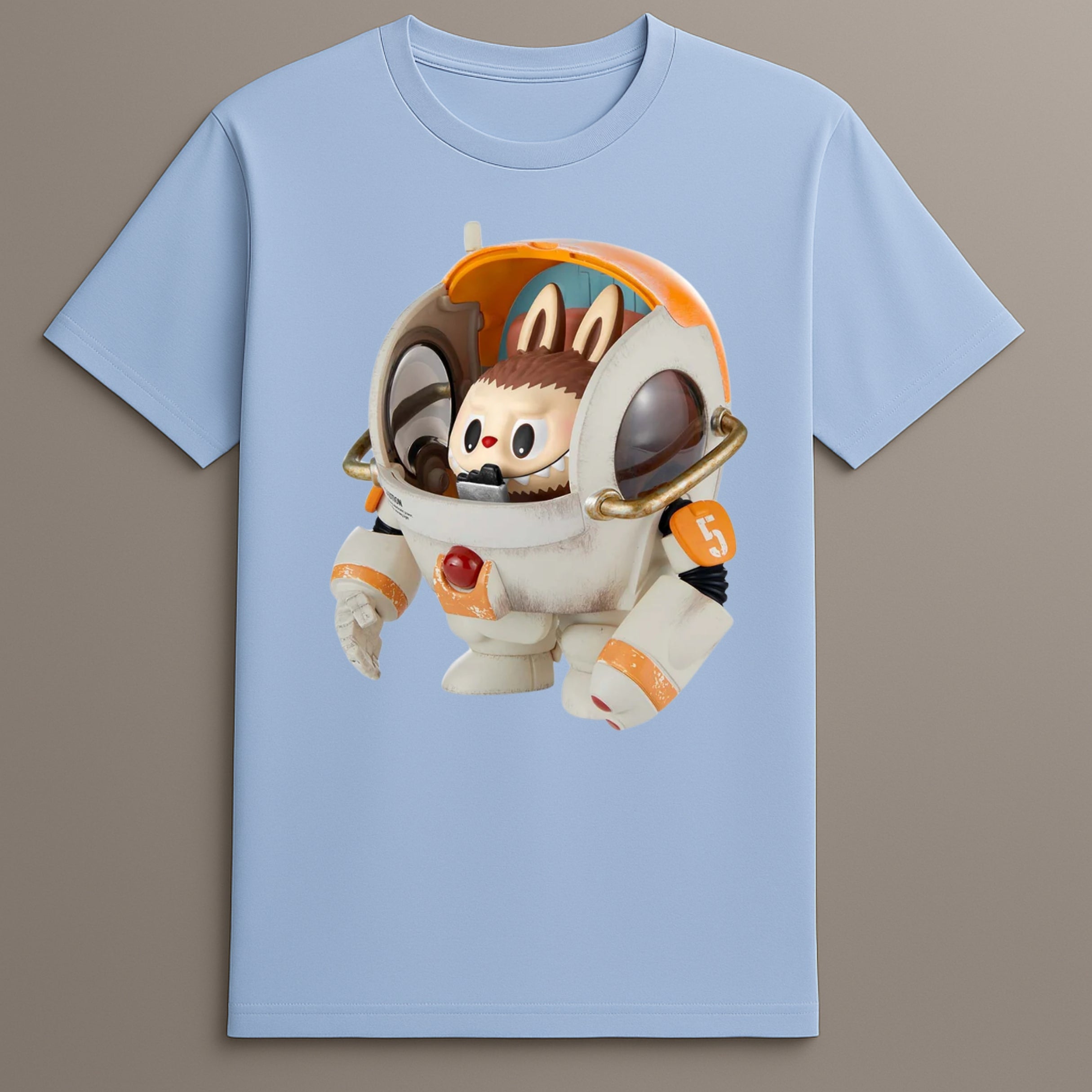 This Casual Character Shirt includes a Labubu figure in robotic gear. The image is expressive without being overly complex, keeping the balance between art and function. It suits creative users looking to express visual interest through clothing.