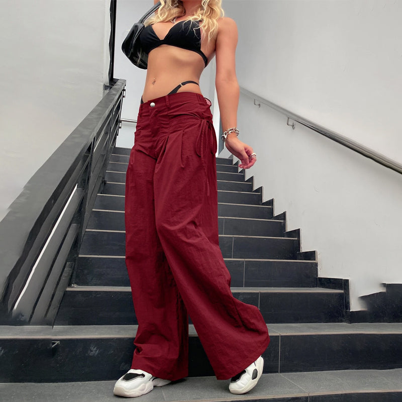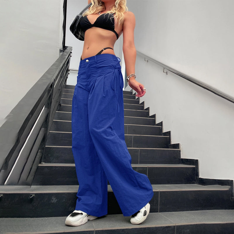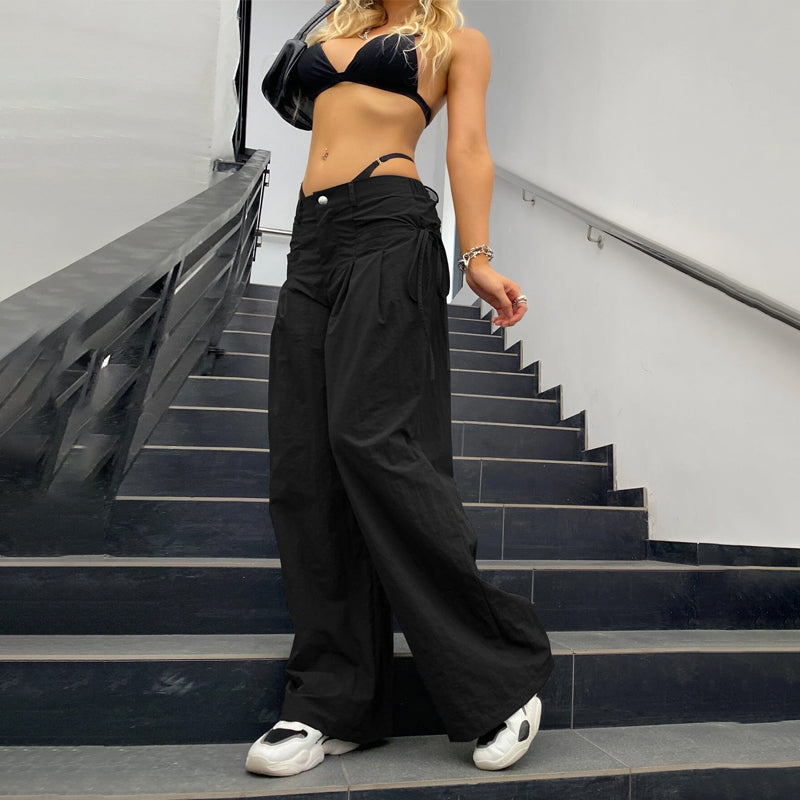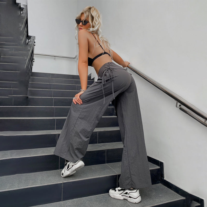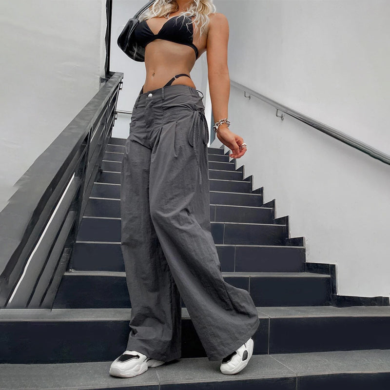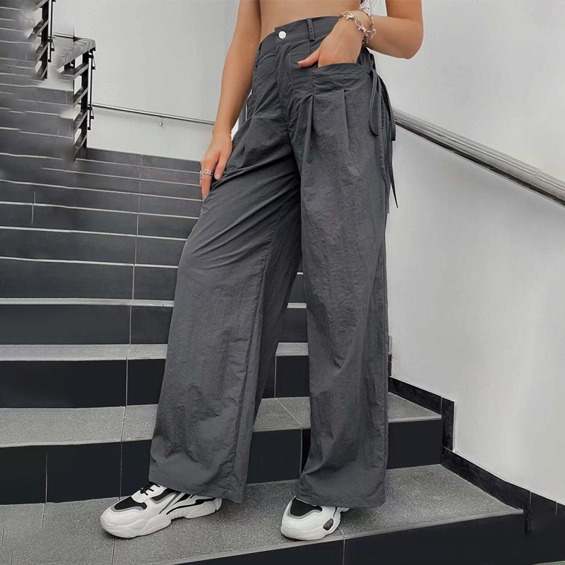 Side Parachute Wide Leg Pants are a must-have style for every woman's wardrobe, with a great fit, and easy care. The loose fit is super flattering on most body types. You can style it with sandals and a sweater, or take it out on the town in this wide-leg pant that looks great with anything you pair them with.
