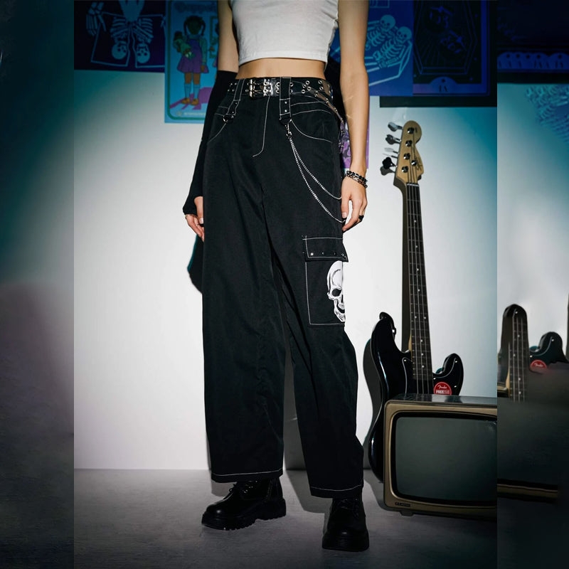 Skull Print Cargo Pants