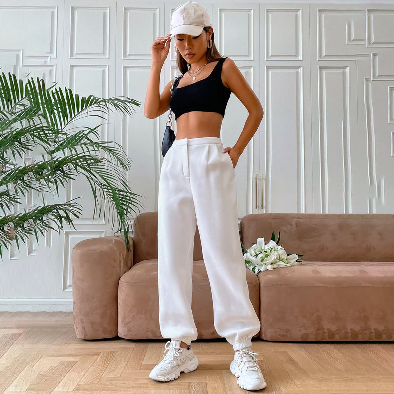 The Slant Pocket Easy Wear Solid Sweatpants are classic and flattering jean-style pants. Featuring a high waist, a straight fit, and comfortable elastic at the ankles, they are a great staple piece in your wardrobe. Fabric is made from soft cotton with a non-stretch construction making them suitable for all seasons.