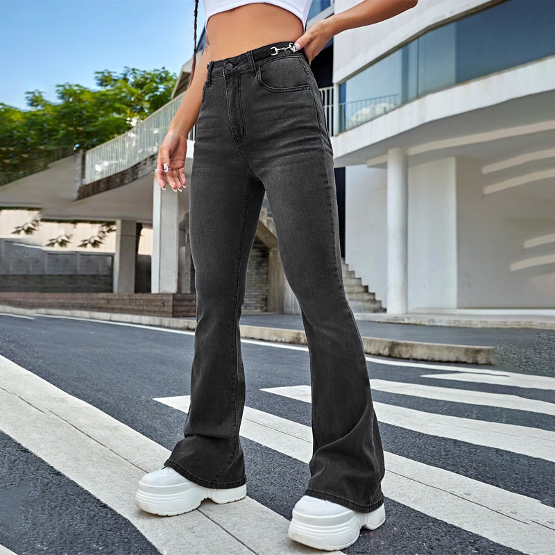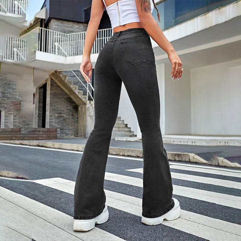 With these Slant Pocket Flare Leg Jeans, any tale will be stylish. These jeans are incredibly elegant and beautifully made, and their flare leg pattern adds to its demand and allure. These are made of high-quality denim and have excellent stretchability and durability. Bootcut pants are what these jeans are known as, and they are offered in five different colors.