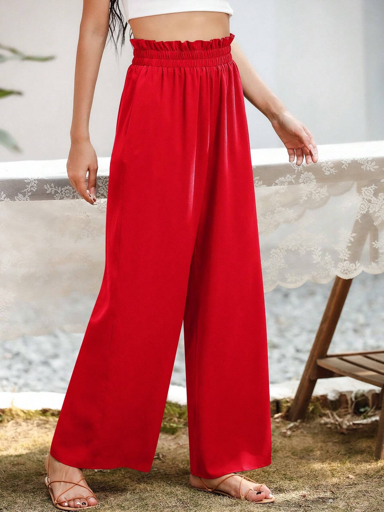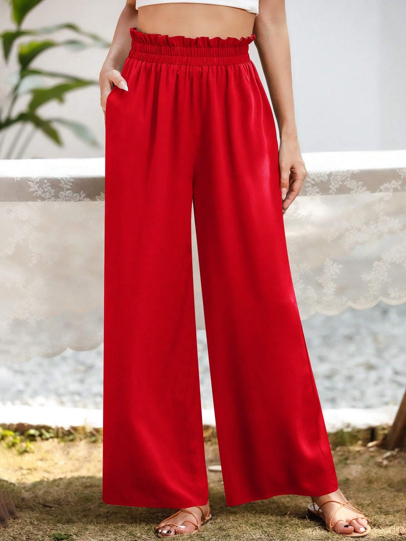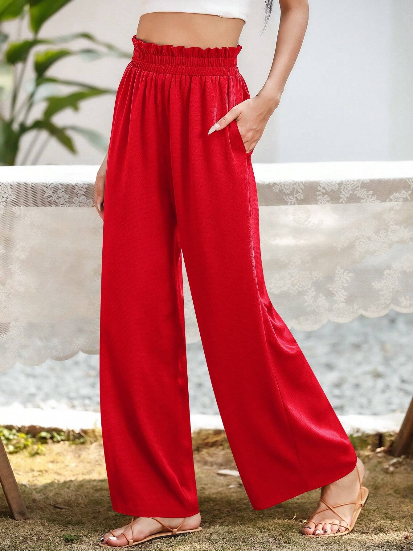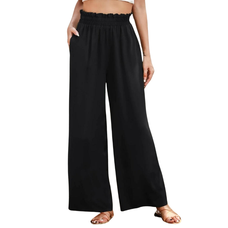 Upgrade your casual wardrobe with these stylish Slant Pocket Wide Pants. Crafted from polyester, these pants offer a luxurious and lightweight feel that's perfect for all-day wear. The plain pattern exudes simplicity and sophistication, making them versatile enough for various occasions. The paper bag waist detail adds a touch of fashion-forward flair, elevating the overall look.