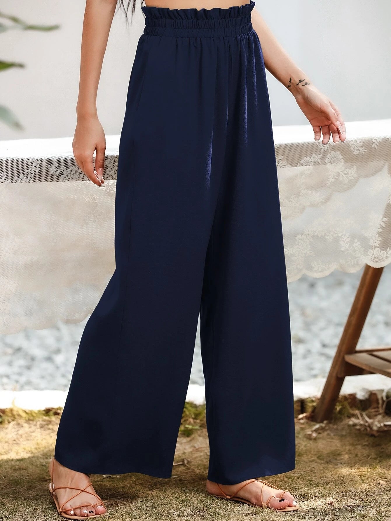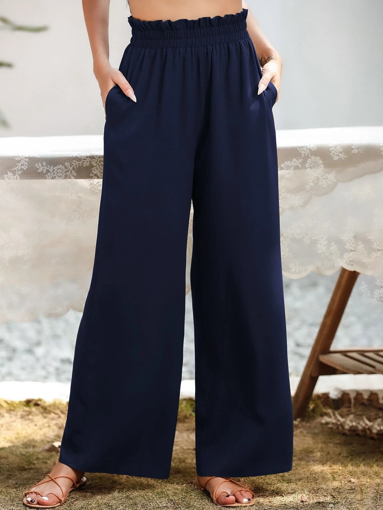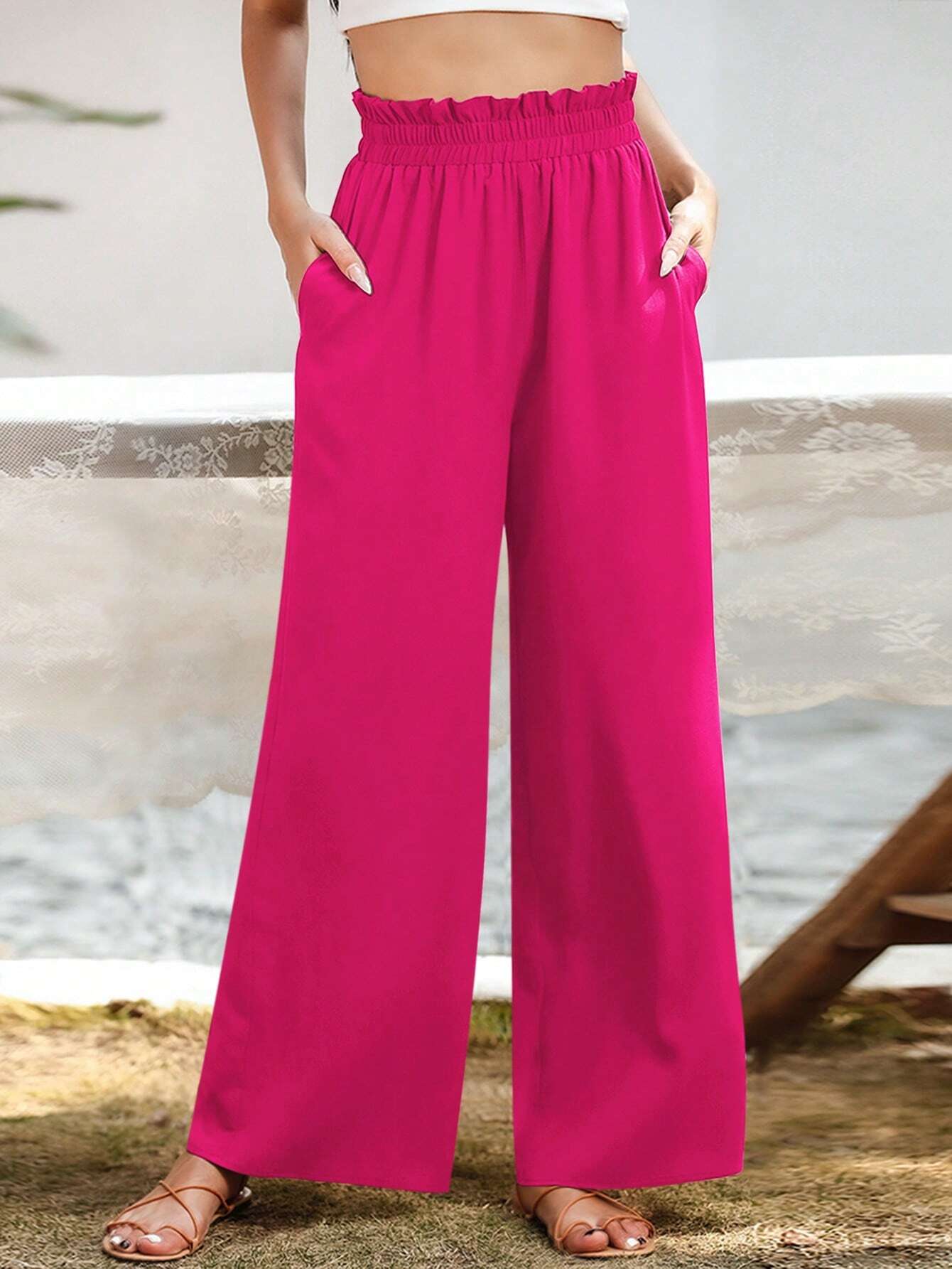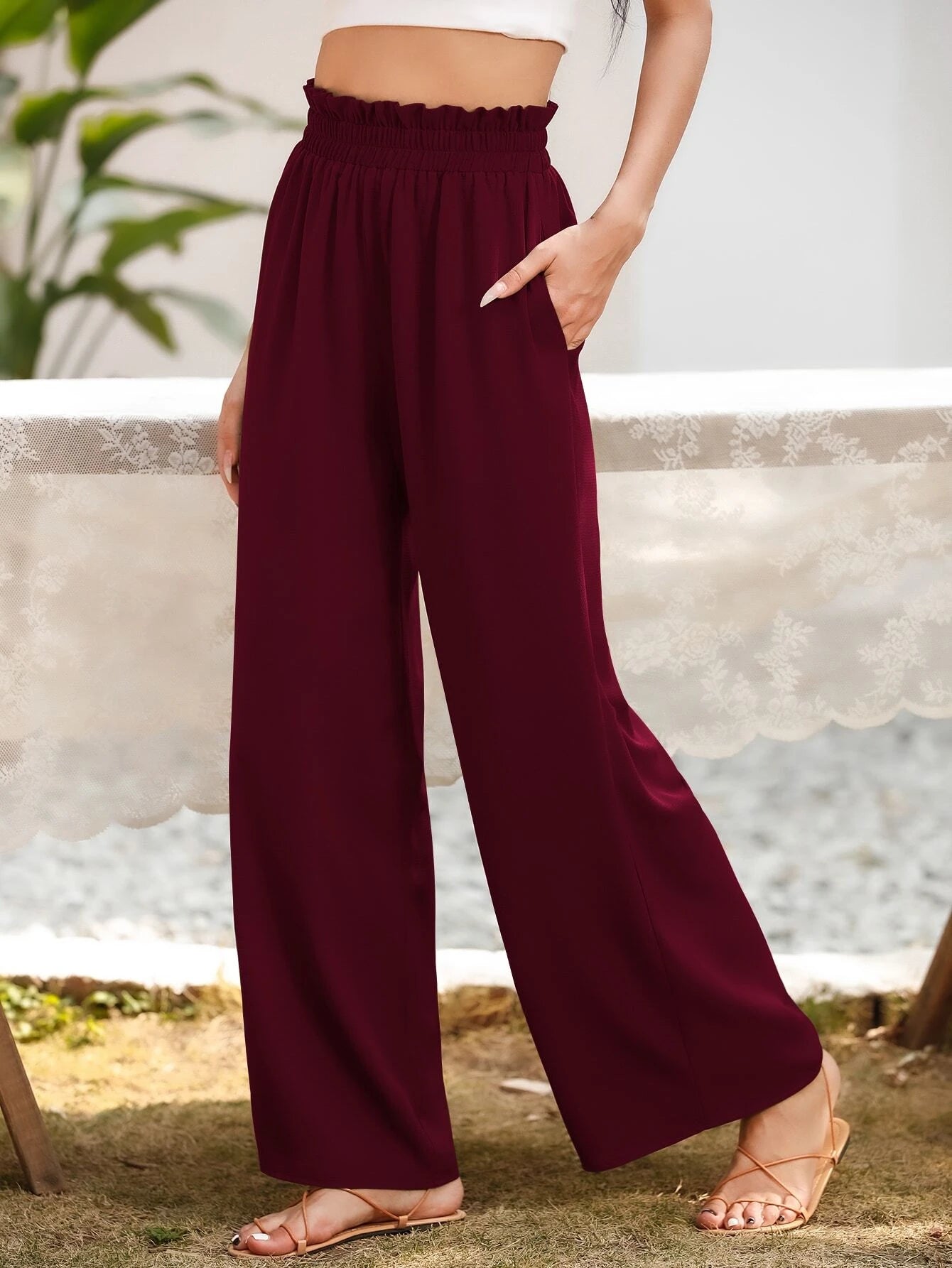 Upgrade your casual wardrobe with these stylish Slant Pocket Wide Pants. Crafted from polyester, these pants offer a luxurious and lightweight feel that's perfect for all-day wear. The plain pattern exudes simplicity and sophistication, making them versatile enough for various occasions. The paper bag waist detail adds a touch of fashion-forward flair, elevating the overall look.