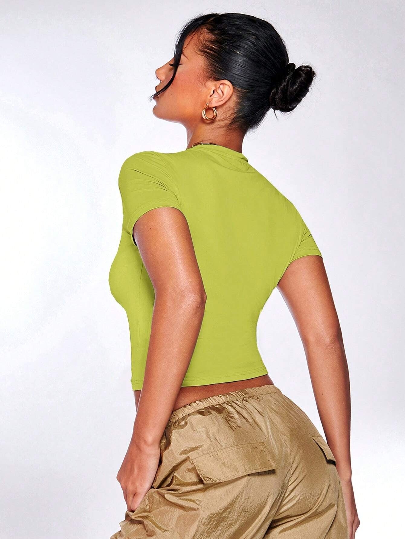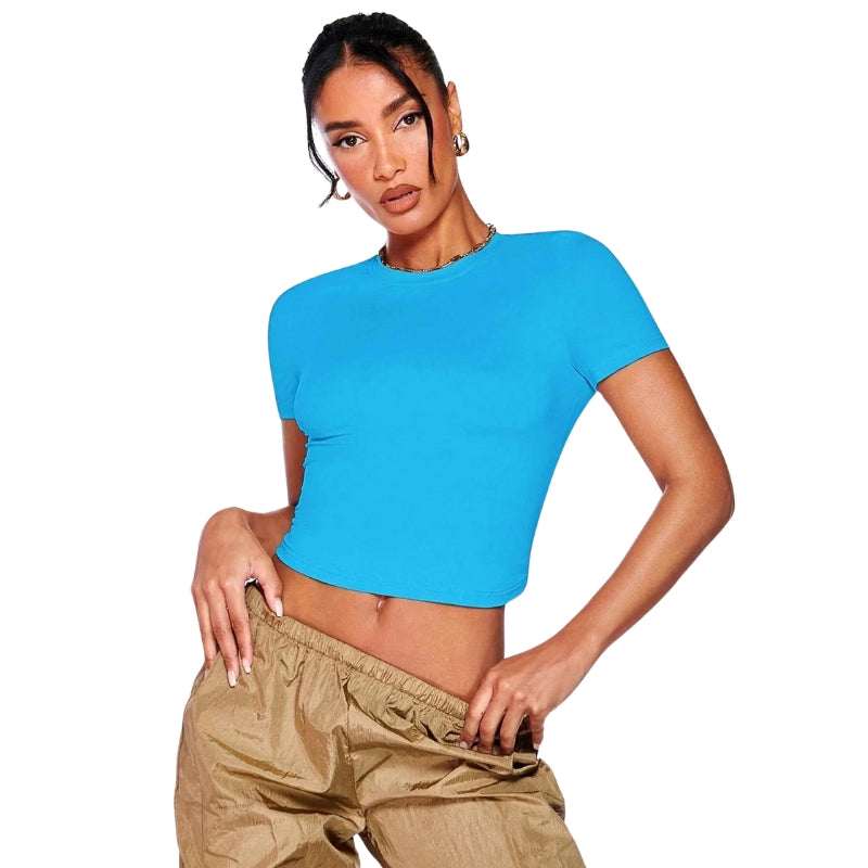 Embrace comfort, style, and versatility with this Slim Fit Solid Tee, a must-have addition to your casual wardrobe. The key feature of this tee lies in its impeccable fit. Tailored to embrace you, the slim-fit silhouette exudes an air of modernity and refinement. Whether you're pairing it with your favorite jeans for a laid-back outing or tucking it into a skirt for a more polished appearance, this tee will effortlessly elevate your outfit.