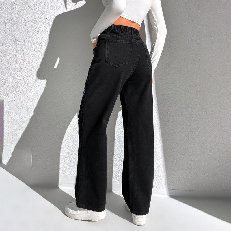 Slogan and Yin & Yang Print Jeans