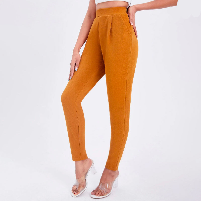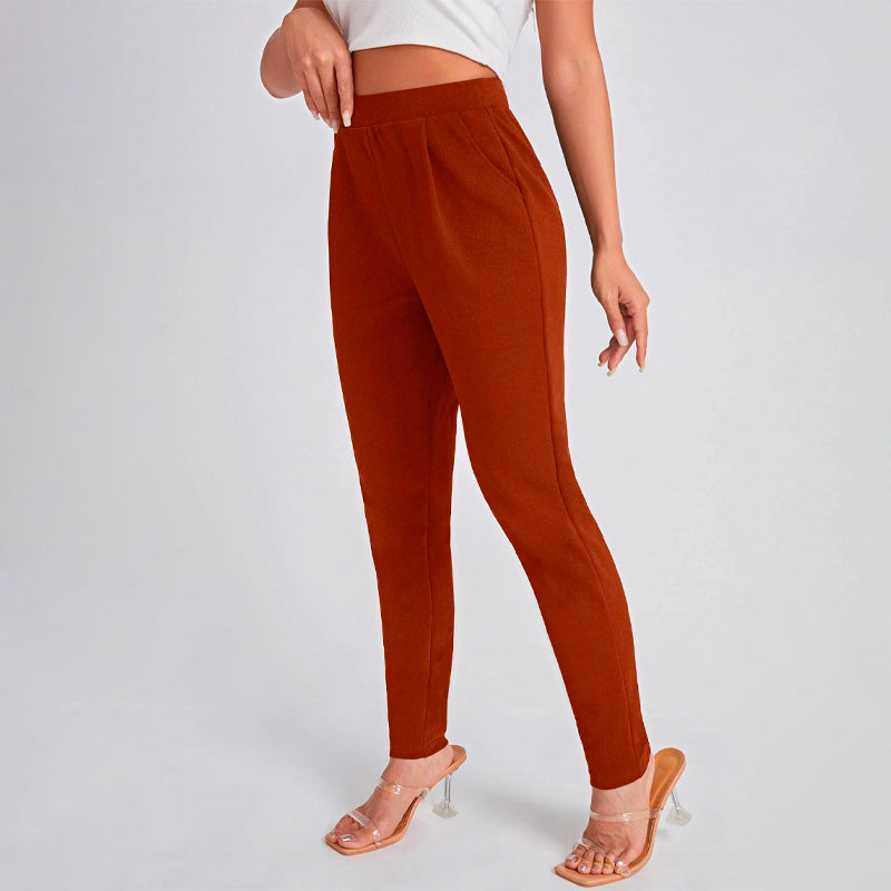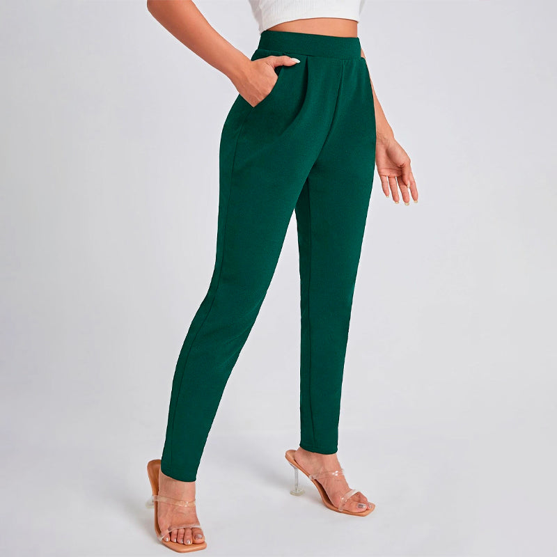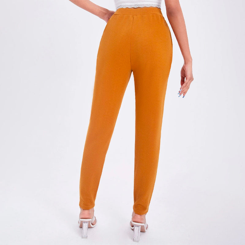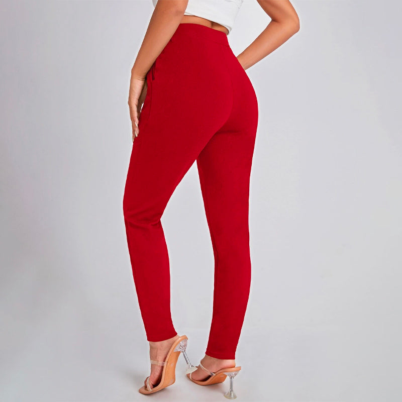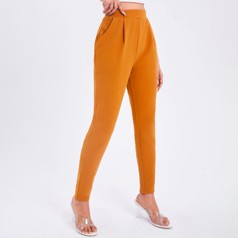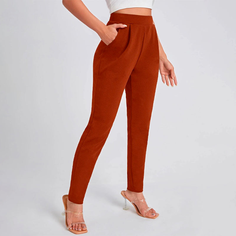 Solid Color Slant Pocket Skinny Pants feature a curved knee for a flattering fit, this straight-leg pant features an elastic waistband so that you can easily take them off. These pants also feature pockets along with a high waist and a regular fit that makes these pants great for every occasion and celebration.