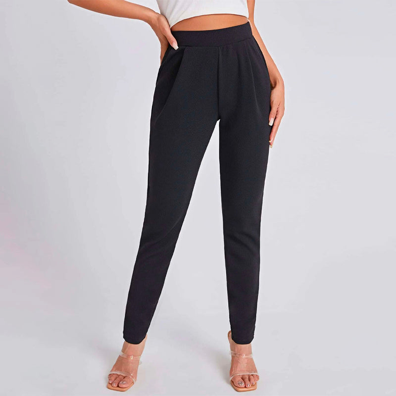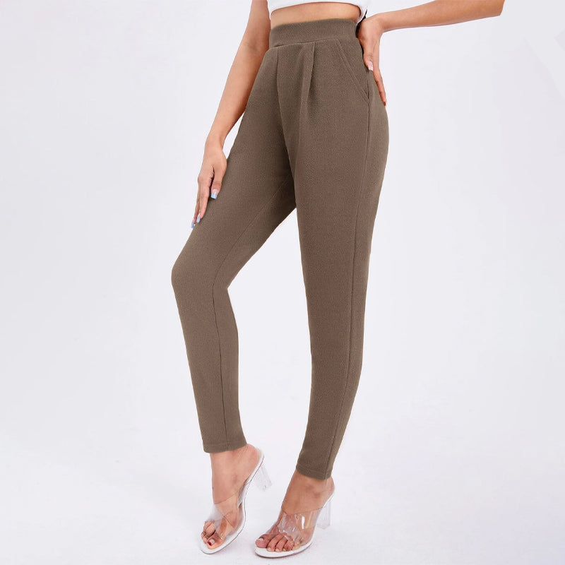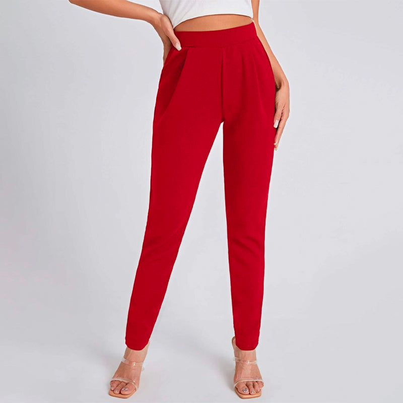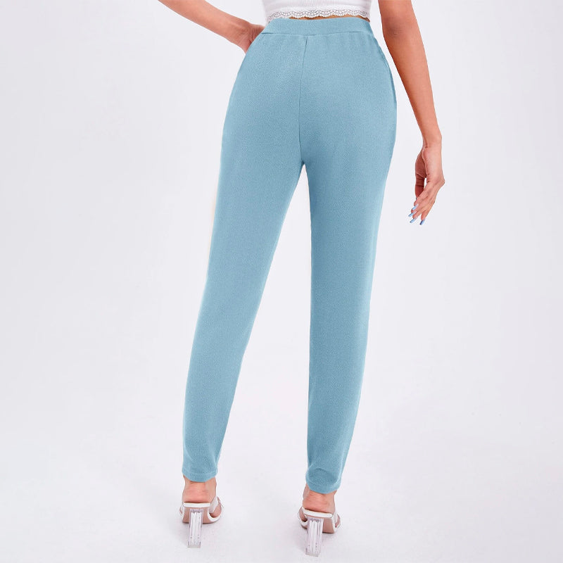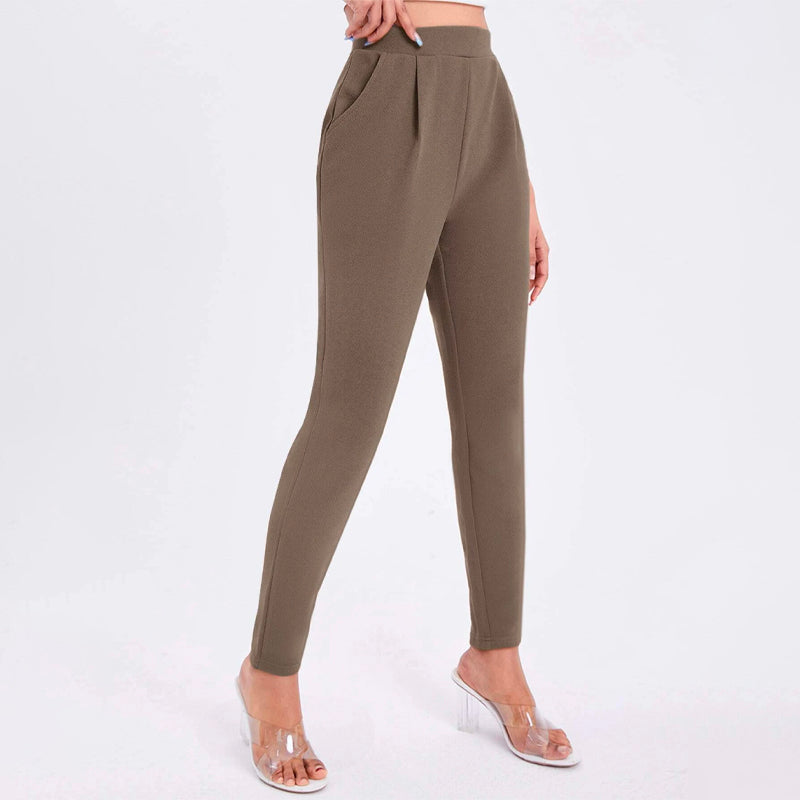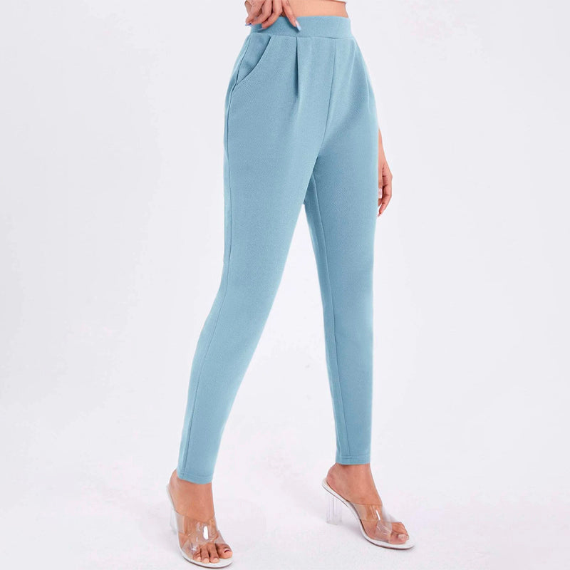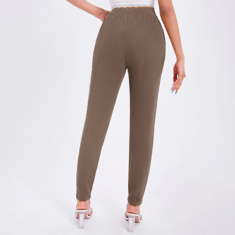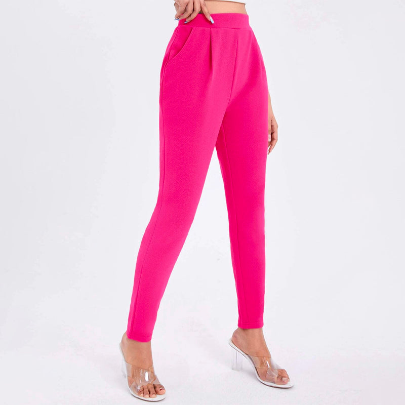 Solid Color Slant Pocket Skinny Pants feature a curved knee for a flattering fit, this straight-leg pant features an elastic waistband so that you can easily take them off. These pants also feature pockets along with a high waist and a regular fit that makes these pants great for every occasion and celebration.