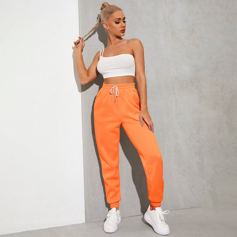 Solid Drawstring Waist Slant Pocket Sweatpants