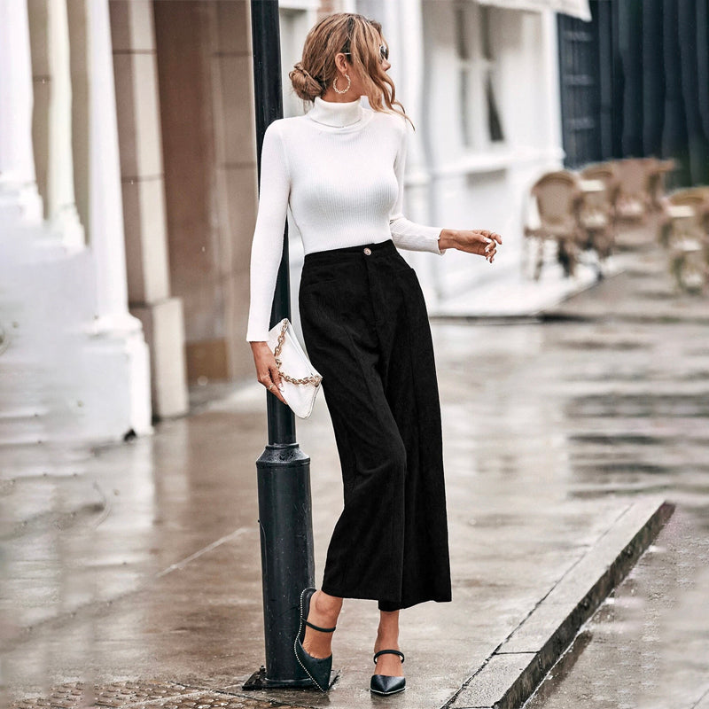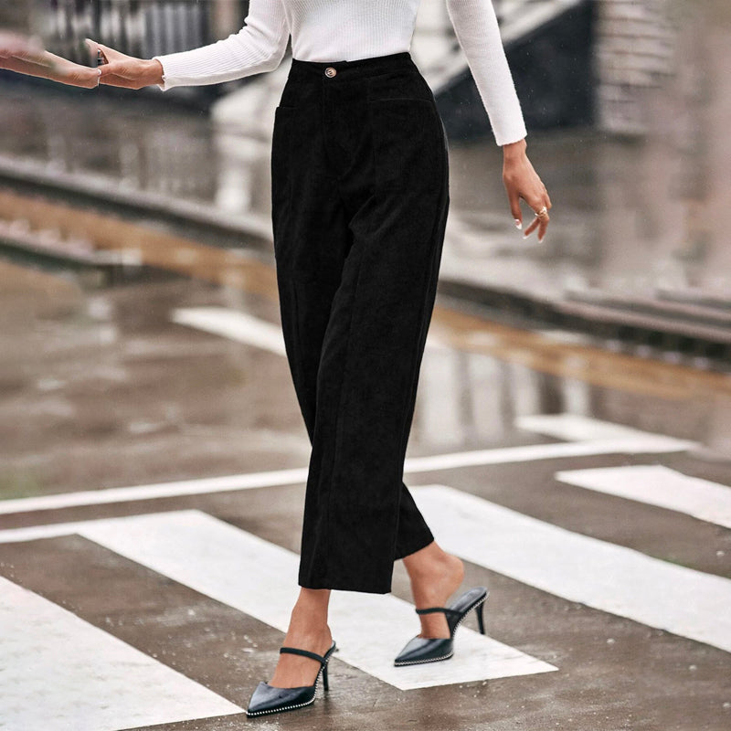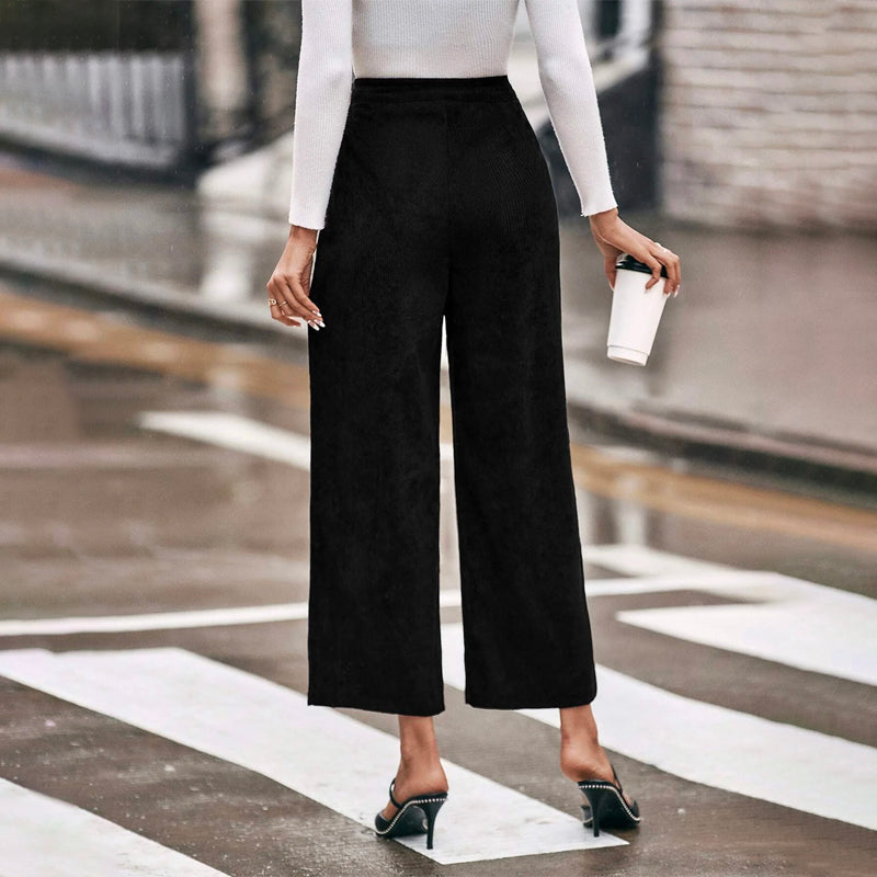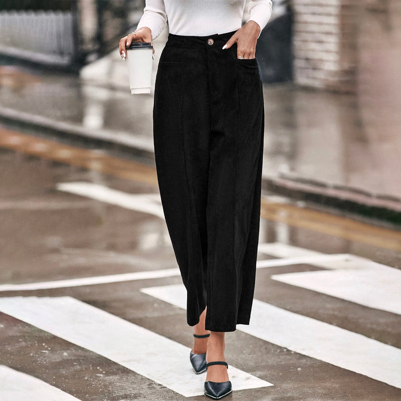 Solid Dual Pocket Corduroy Wide Leg Pants