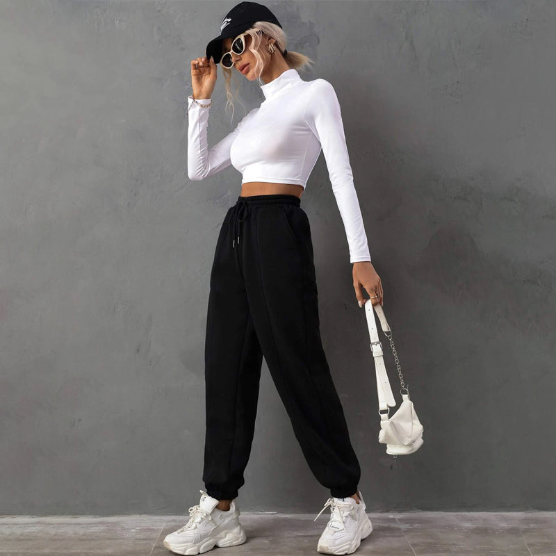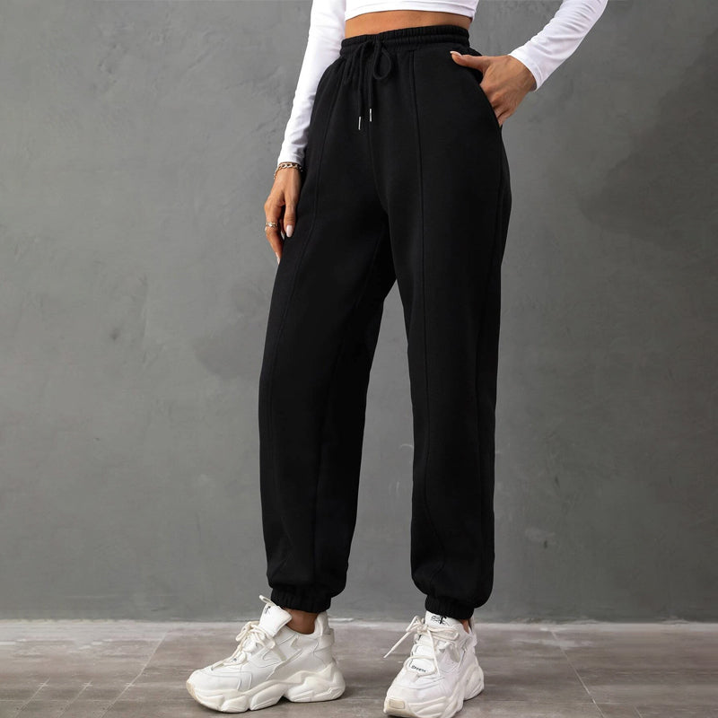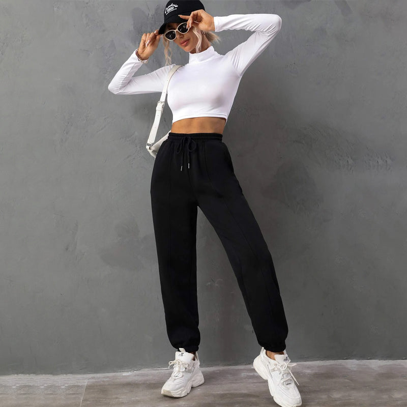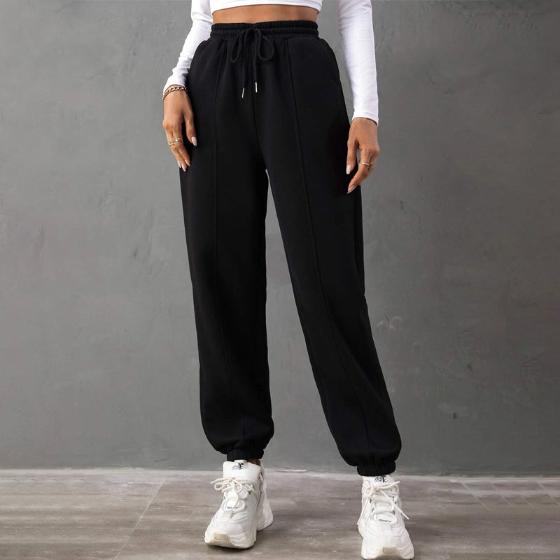 Solid High Waist Drawstring Sweatpants come in soft, woven knit and are a comfortable alternative to leggings or yoga pants. Featuring a flattering high waist, they are ready to wear right out of the box. These versatile pants can be dressed up or down and best of all, they won't stay wrinkle-free.